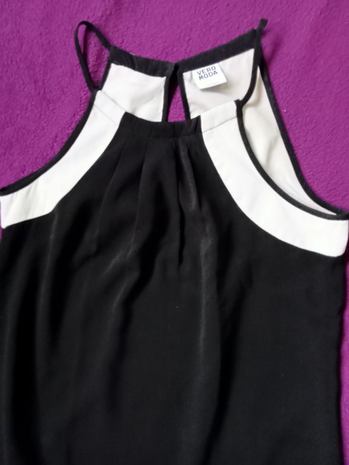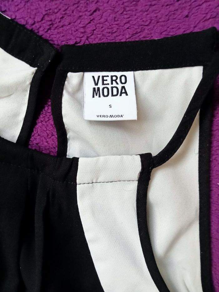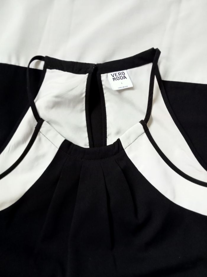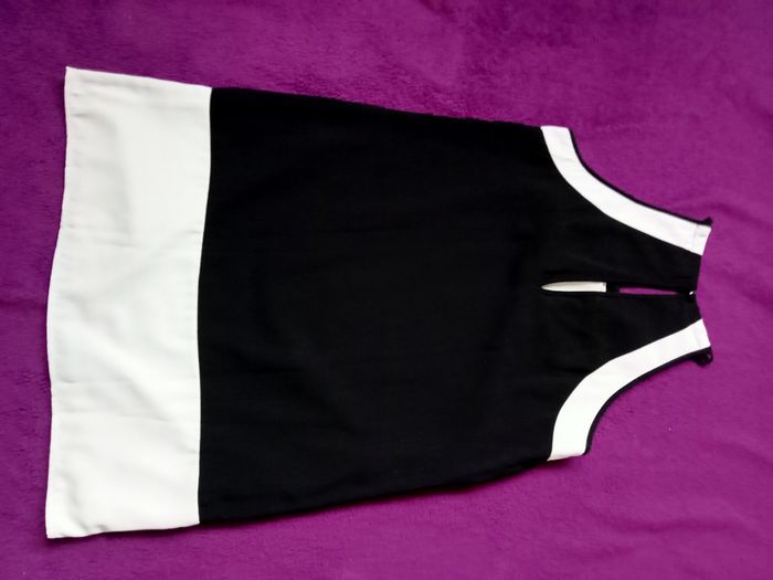 Robe Véro moda col rond coupe élégante et fluide taille S. Robe doublure, courte au-dessus du genou. Noir et gris