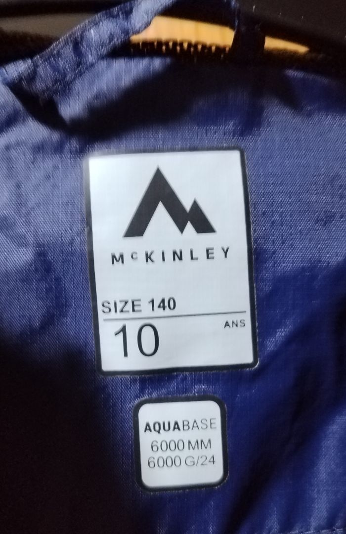 Coupe vent de qualité en taille 10 ans de la marque mc kinley. Bleu a fermeture a zip et poches zip' Voir les photos pour détails.