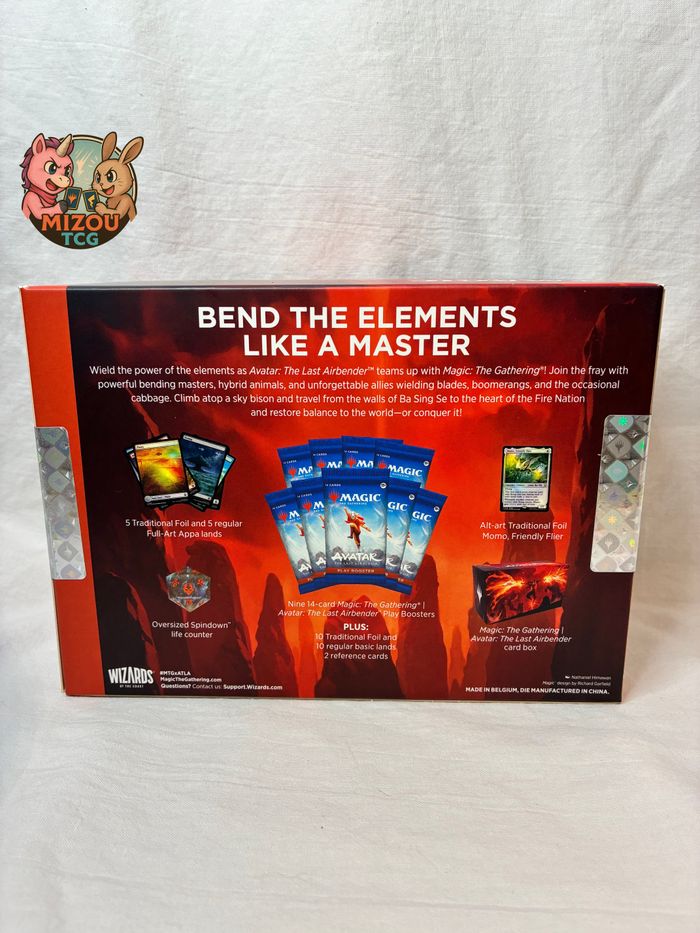 📦 Bundle Magic: The Gathering | Avatar: The Last Airbender - Version Anglaise Collaboration exclusive entre Magic et Avatar: Le Dernier Maître de l\'Air. Idéal pour les fans de la série et les joueurs MTG ! 🃏 Contenu complet: - 9 Play Boosters (14 cartes chacun) - 1 carte promo foil avec artwork alternatif exclusif - 15 terrains foil (dont 5 full-art Appa) - 15 terrains non-foil (dont 5 full-art Appa) - 1 compteur de vie Spindown géant thématique - 1 boîte de rangement Avatar x MTG - 2 cartes de référence ✨ Les terrains full-art Appa sont magnifiques et très recherchés par les collectionneurs. 📋 État: Produit scellé, jamais ouvert. 🚀 Livraison rapide 24-48h maximum Mots-clés: Magic The Gathering, MTG, Avatar The Last Airbender, Avatar Le Dernier Maitre de l\'Air, Bundle, Play Booster, Aang, Katara, Sokka, Toph, Appa, cartes anglais, EN, TCG, trading card game, Wizards of the Coast, cartes à collectionner, foil