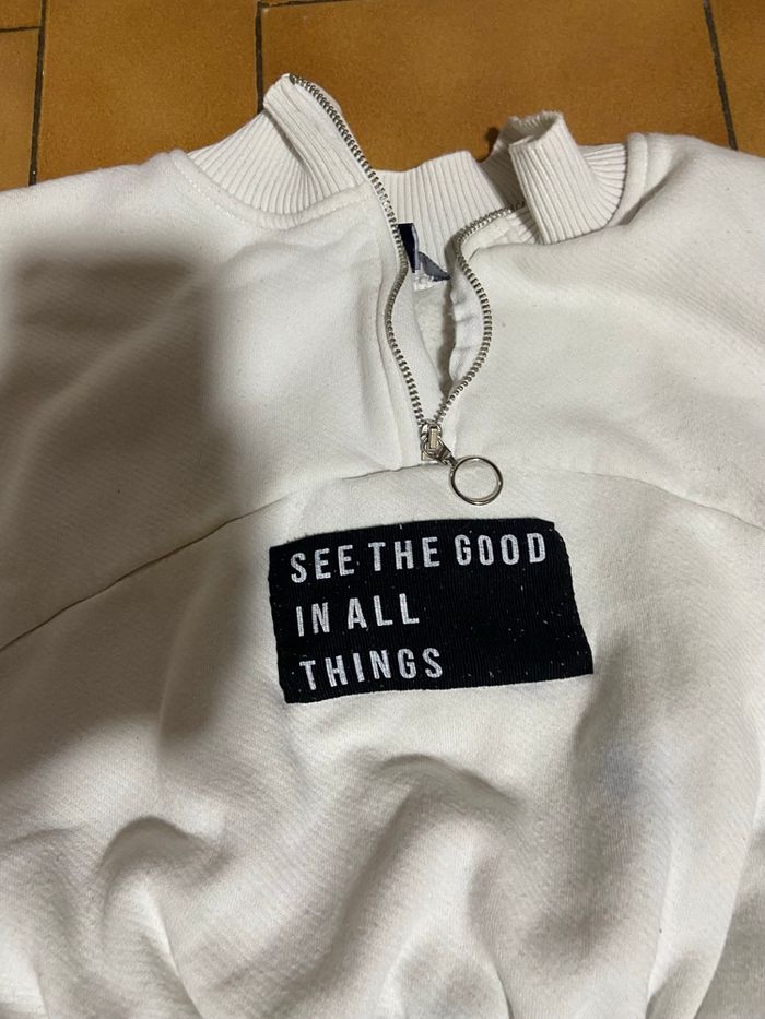 Sweat crop blanc et noir taille 14 ans kiabi  - photo numéro 1