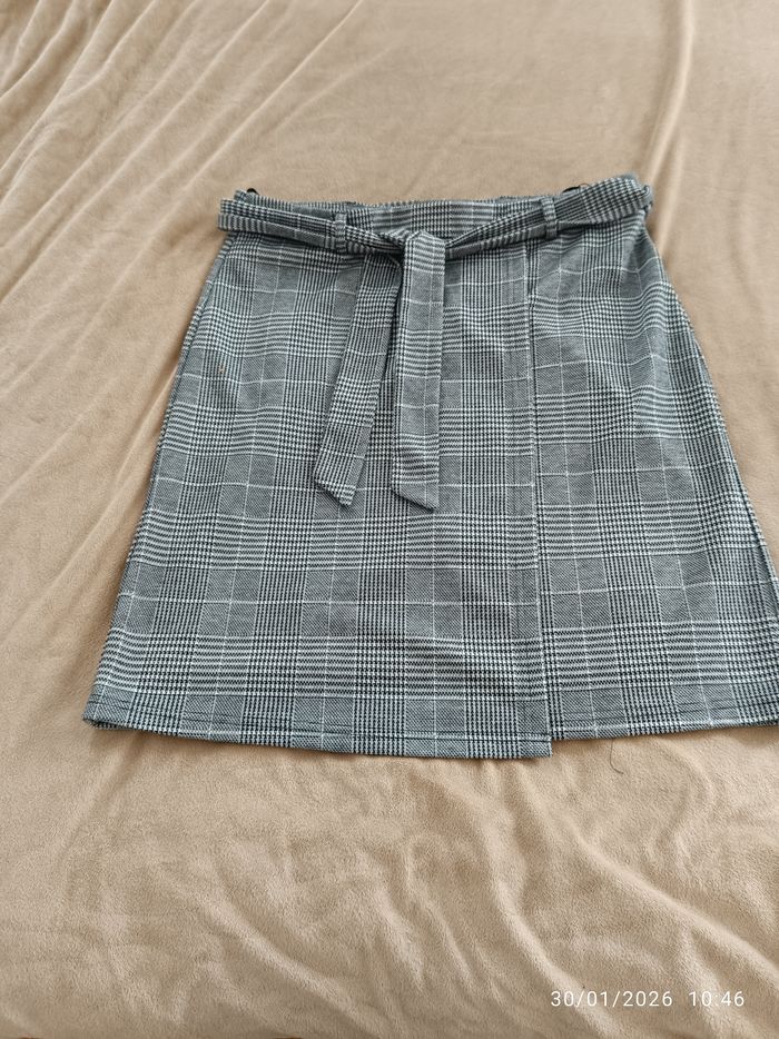 Jupe grise avec ceinture, arrive au genou, marque FAiR Lady,taille 44, en parfait état