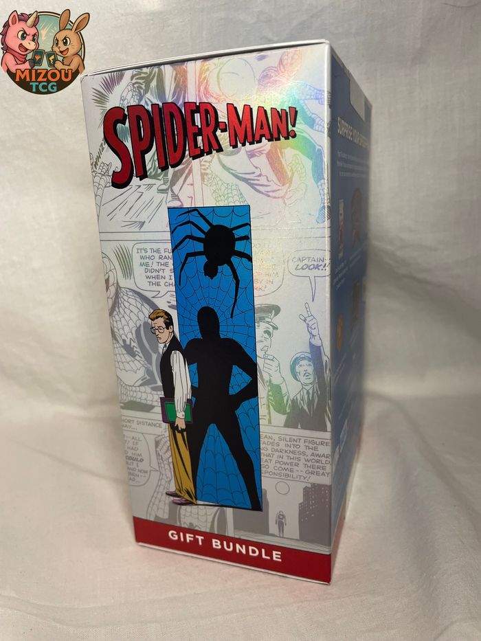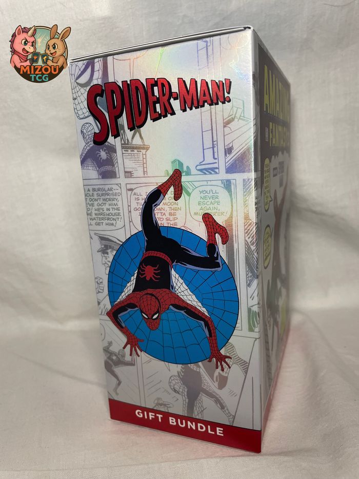 Ce Gift Bundle est la version premium avec un Booster Collector en plus du contenu standard. Design inspiré de la couverture iconique d'Amazing Fantasy #15 (première apparition de Spider-Man en 1962).