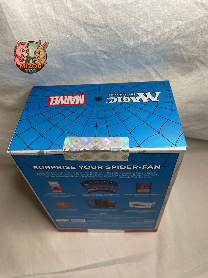 Mots-clés: Magic The Gathering, Marvel, Spider-Man, Bundle, Gift Bundle, Booster Collector, Play Booster, cartes à collectionner, TCG, Gwenom, promo foil, terrains foil, dé Spindown, boîte rangement, anglais, English, EN, Wizards of the Coast, Amazing Fantasy, comics, super-héros, cartes premium, extension Marvel, scellé