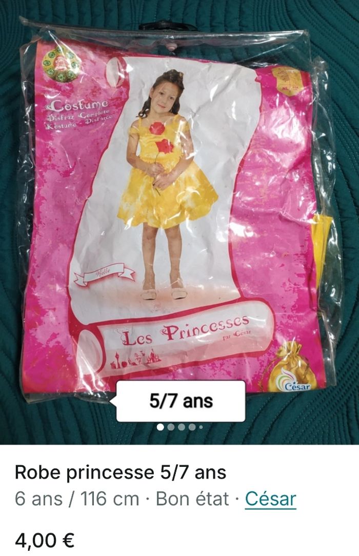 Bonjour vend Lot de vêtements 5-6 ans Un déguisement 4€ Deux robe 1€ pièce Trois t-shirt 1€ pièce *Offre 6€ le lot ou prix a l'unité * N'hésitez si vous souhaitez plus de photos ou informations