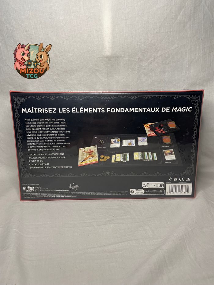 Mots-clés: Magic The Gathering, Avatar, Avatar Le Dernier Maître de l'Air, Avatar The Last Airbender, boite apprentissage, beginner box, deck tutoriel, Aang, Zuko, Katara, Sokka, Iroh, Jumpstart, initiation magic, apprendre magic, français, VF, Universes Beyond, jeu cartes, TCG, deux joueurs, débutant, tapis jeu, spindown, wizard coast