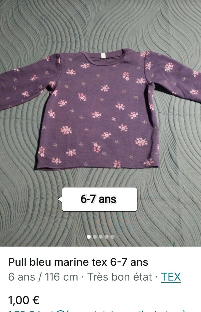 Bonjour vend Lot de vêtements 6-7 ans Un t-shirt 1€ Un pull 1€ *Offre 1€50€ le lot ou prix a l'unité * N'hésitez si vous souhaitez plus de photos ou informations