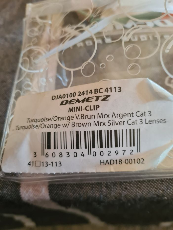 Lunette soleil. Bébé. Demetz. Turquoise,  orange. Mini-clip.
