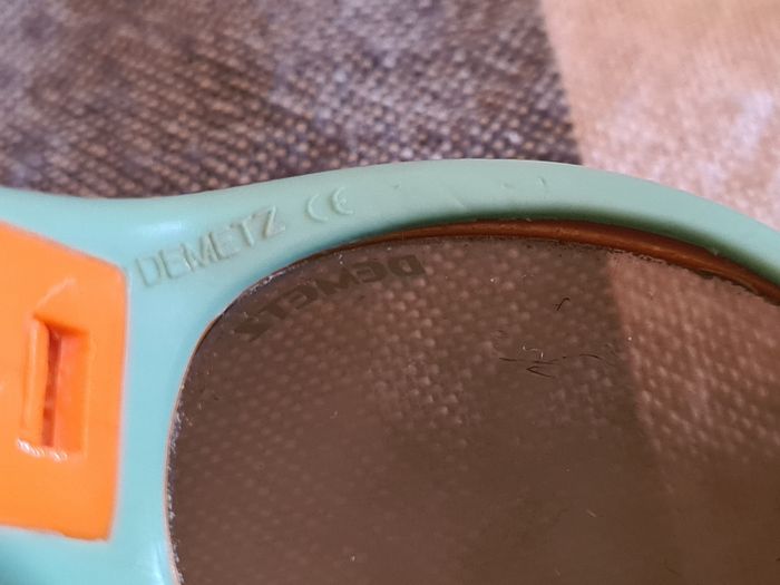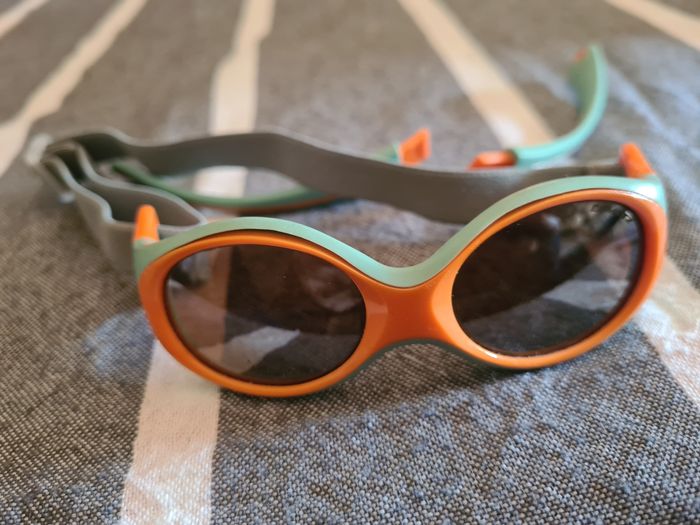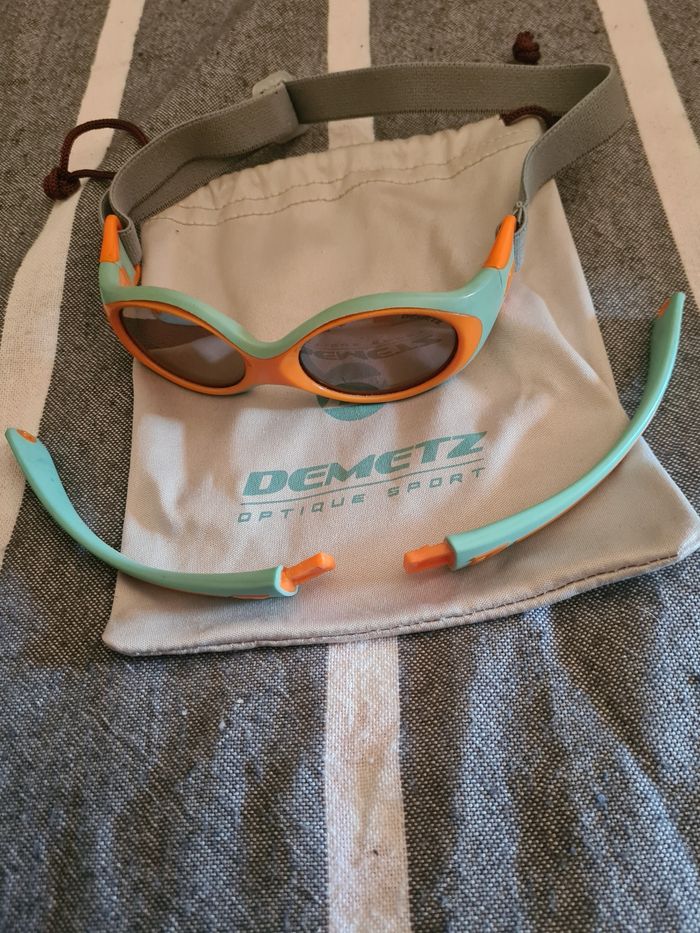 Lunette soleil. Bébé. Demetz. Turquoise,  orange. Mini-clip. - photo numéro 3