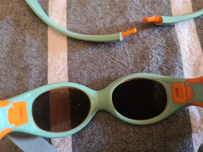 Lunette soleil. Bébé. Demetz. Turquoise,  orange. Mini-clip. - photo numéro 7