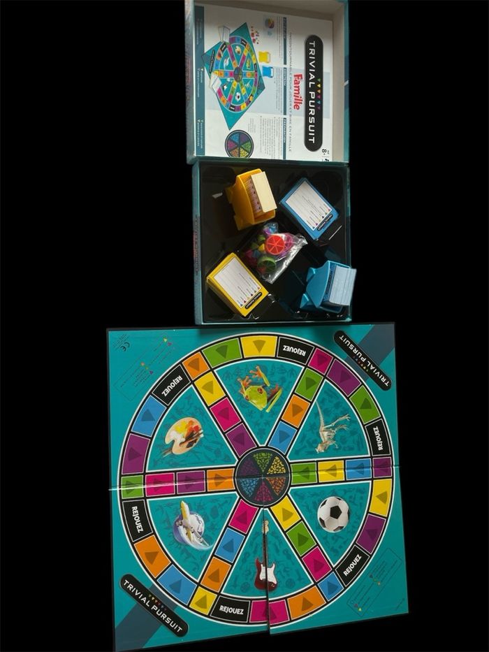 Le célèbre jeu de questions/réponses avec 2 400 toutes nouvelles questions ! Seul ou en équipe, le but est d'être le premier à remplir son camembert en répondant correctement aux six catégories de questions et en obtenant les triangles correspondants. La version idéale pour les parties rapides en famille grâce : - aux 1 200 questions spéciales enfants et aux 1 200 questions spéciales parents, - à la face Triangle du dé qui vous permet de choisir la catégorie de la question, - à la possibilité de remporter un triangle marqueur sur toutes les cases du plateau ! 2 joueurs et +.