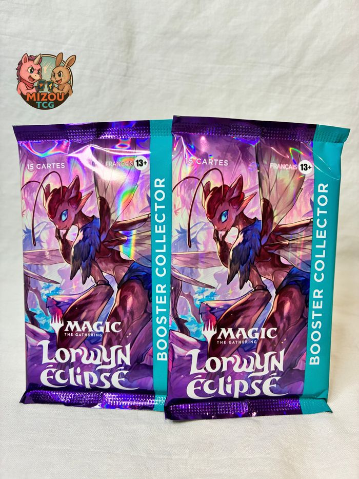 🎴 Lot de 2 BOOSTERS COLLECTOR LORWYN ÉCLIPSÉ - MAGIC THE GATHERING Version française - Extension sortie le 23 janvier 2026 📦 CONTENU D'UN BOOSTER (15 cartes) : - 11-12 cartes en foil traditionnel - 5 cartes de rareté rare ou mythique rare - 1 terrain de base full-art (Lorwyn ou Shadowmoor) - 1 carte d'art ou jeton double face foil - Cartes Commander exclusives extended-art ✨ TRAITEMENTS EXCLUSIFS : - Terrains shock réversibles sans bordure - Cartes cadre fable (style conte de fées) - Cartes Japan Showcase - 20 Special Guests en gravure sur bois 🏆 CARTE HEADLINER : Moins de 1% des boosters contiennent une Bitterbloom Bearer sérialisée double rainbow foil par Rebecca Guay (500 exemplaires au monde) 📋 ÉTAT : Produit scellé, jamais ouvert 🚀 Livraison rapide 24-48h maximum Mots-clés: Lorwyn Éclipsé, Lorwyn Eclipsed, Magic The Gathering, MTG, Collector Booster, Booster Collector, cartes foil, mythique rare, Bitterbloom Bearer, Rebecca Guay, shock lands, fable frame, Special Guests, Shadowmoor, terrain full-art, français, FR, TCG, cartes à collectionner