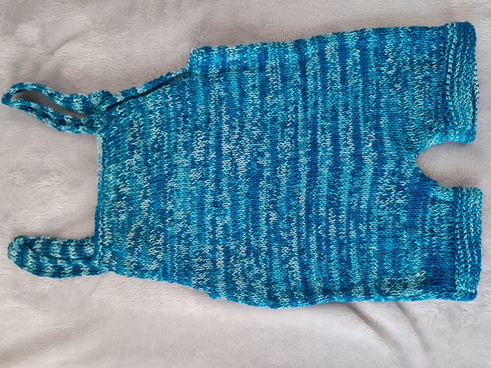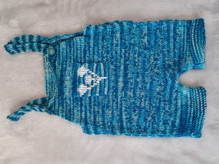 Combi-short, à bretelle, attache bouton, pour l'âge se référer au mesure Longueur : 46cm Matière : 100 % Coton Marque : Fait main au tricot