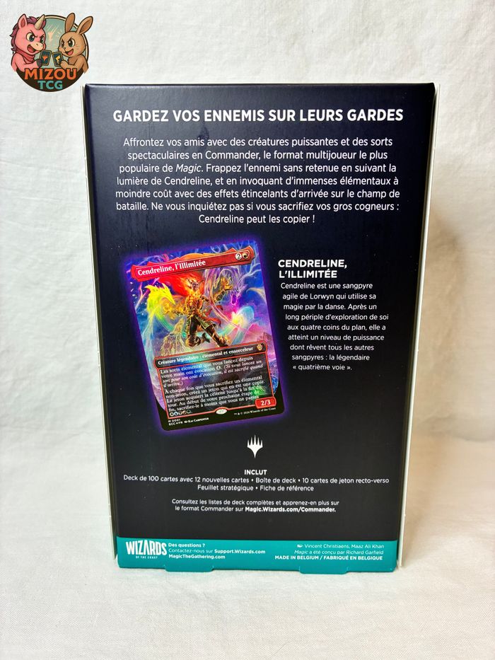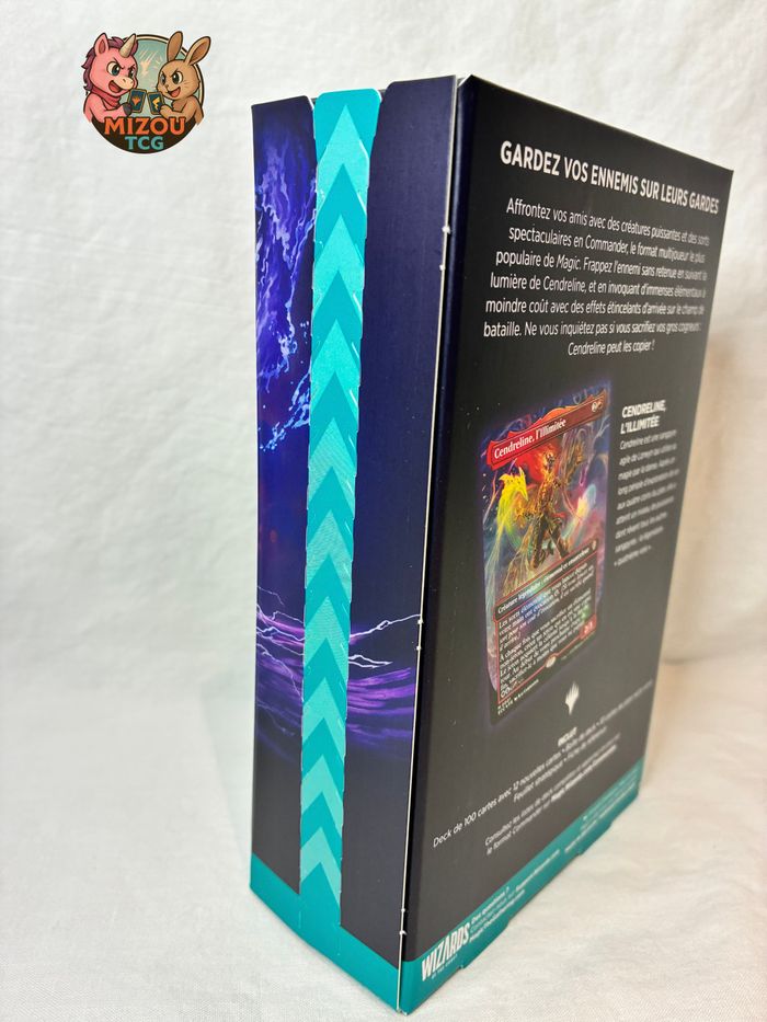📦 DECK COMMANDER - MAGIC THE GATHERING Deck Commander Danse des Éléments de l'extension Lorwyn Éclipsé (Lorwyn Eclipsed) en version française. 🃏 CONTENU: - 100 cartes Magic prêtes à jouer - 12 cartes inédites dont 2 mythiques foil - 1 commandant légendaire foil : Ashling l'Infinie - 10 jetons double-face - Boîte de rangement - Fiche de stratégie et carte de référence ⚡ STRATÉGIE: Deck 5 couleurs basé sur les élémentaires et la mécanique d'évocation. Invoquez des créatures massives à coût réduit, exploitez leurs effets d'arrivée puis copiez-les avec Ashling. Inclut des reprints premium : Fury, Endurance, Risen Reef. ✅ État: Produit scellé 🚀 Livraison rapide 24-48h maximum Mots-clés: Magic The Gathering, MTG, Commander, EDH, Lorwyn Éclipsé, Lorwyn Eclipsed, Dance of the Elements, Danse des Éléments, Ashling, deck préconstruit, élémentaires, elementals, evoke, 5 couleurs, WUBRG, Fury, Endurance, format commander, cartes Magic FR
