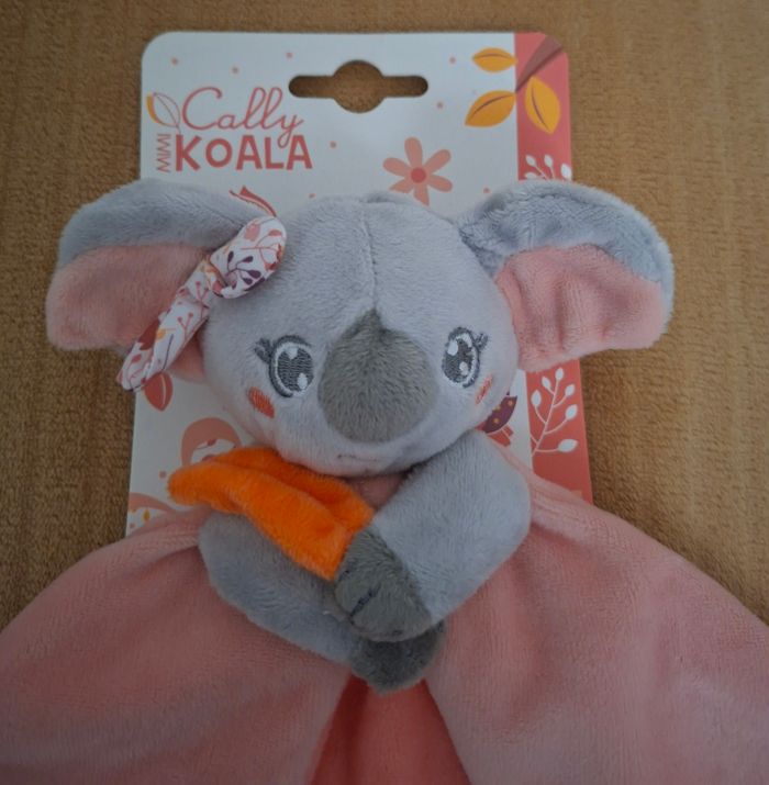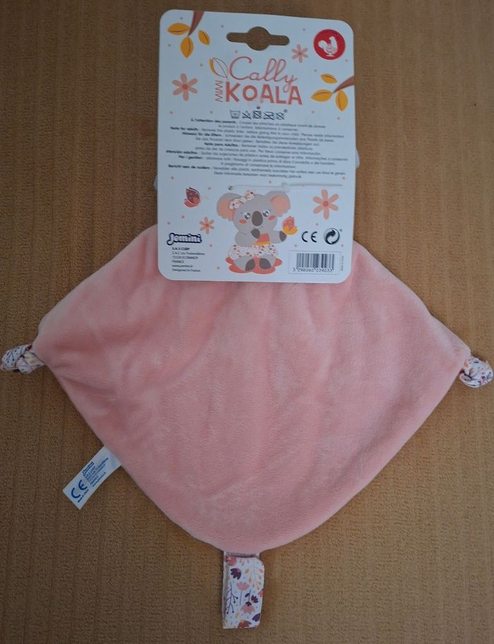 Doudou Koala Cally Jemini Rose et Gris Avec Attache-Tétine Neuf