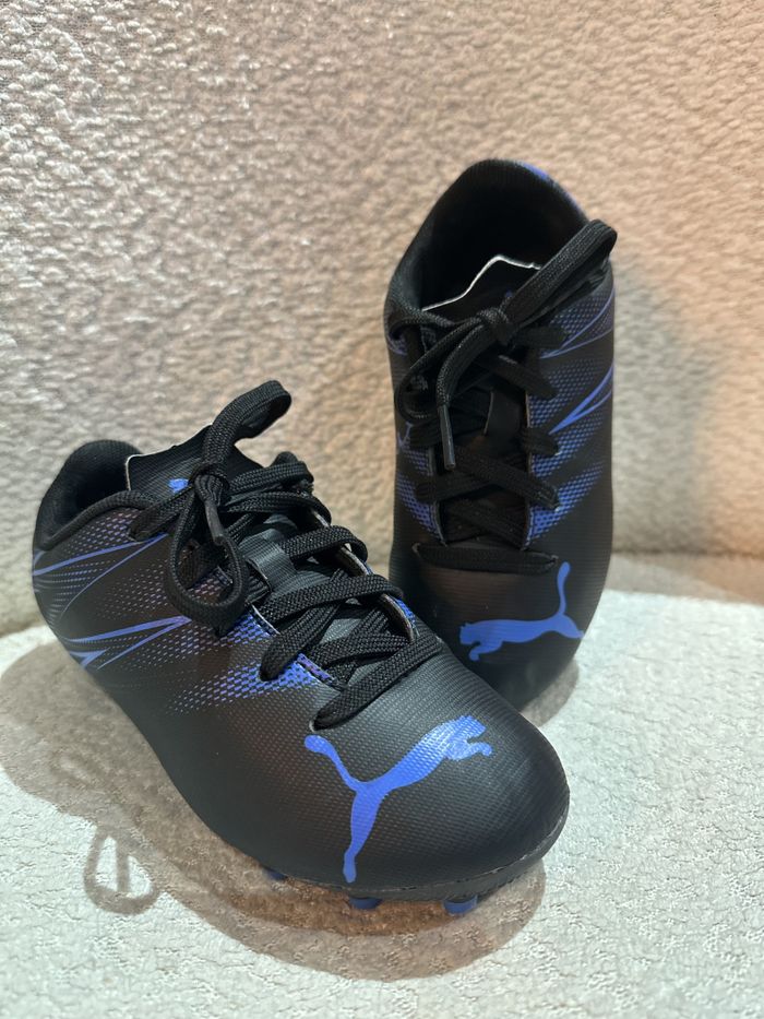 Chaussures de foot noir et bleu Puma, pointure 28. Excellent état car portées seulement 2/3 fois. #Chaussuresdefoot #Chaussuresdefoot28 #Puma #Foot
