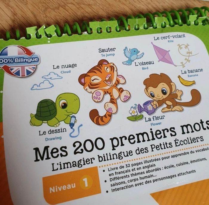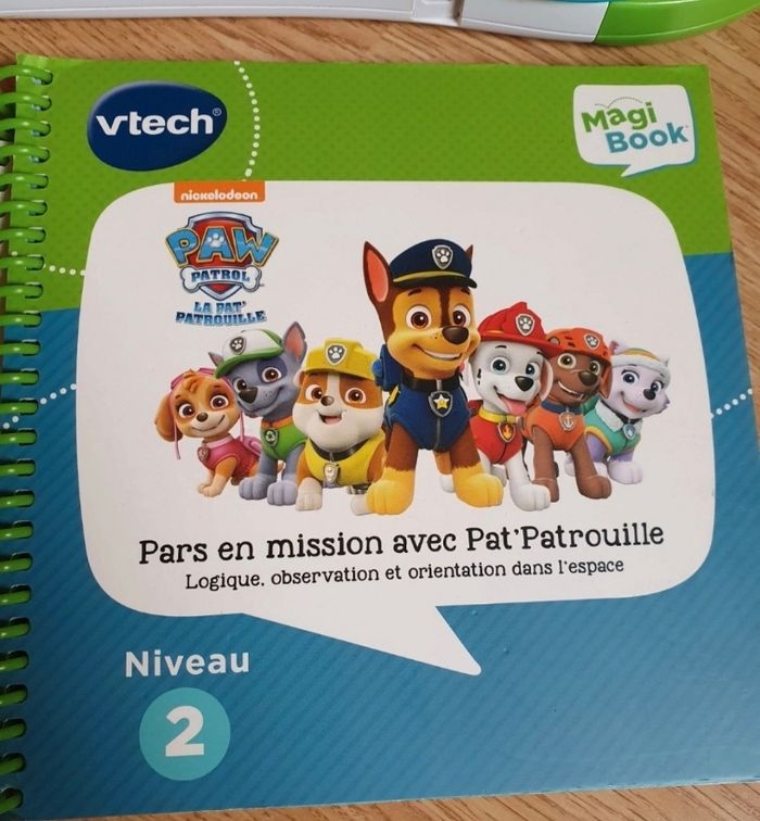 Livres fournis : - niveau 1 : mes 200 premiers mots (la premiere page n est plus accrochée à la spirale mais c'est juste un descriptif donc pas dérangeant) - niveau 2 : pars en mission avec Pat Patrouille - livret jeu educatif Quelques marques d usure. Manque la boite d'origine. Fonctionne parfaitement Je vends d'autres jouets mais également des vêtements et livres pour enfant. Réductions activées pour les lots