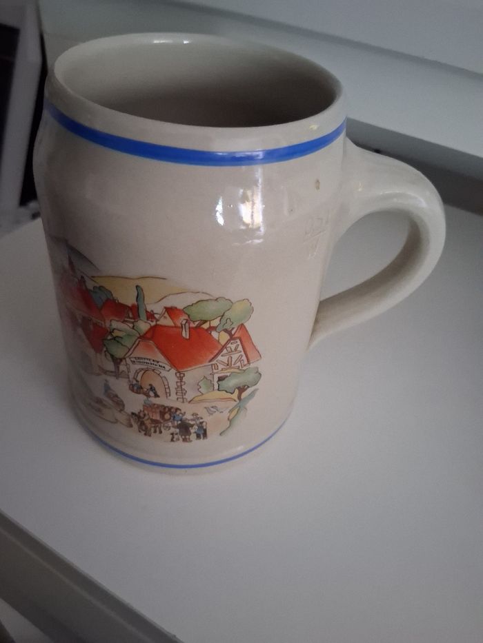 Chope à bière alsacienne en grès vernis La brasserie du village Contenance : 0.50 litres Excellent état