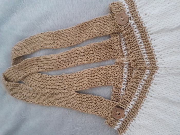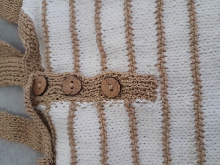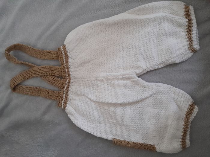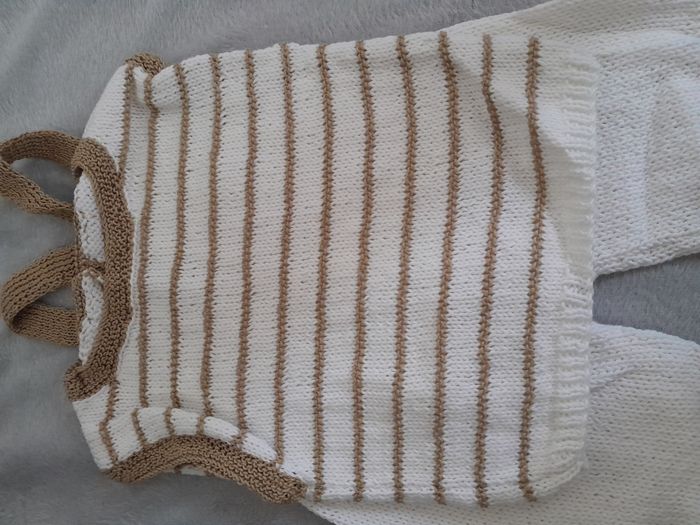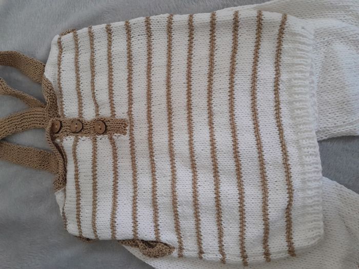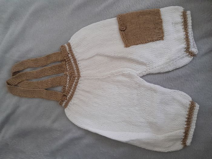 Ensemble, salopette + débardeur, attache bouton, pour l'âge se référer au mesure Longueur : 50cm pour la salopette, 32cm pour le débardeur Matière : 100 % Coton Marque : Fait main au tricot