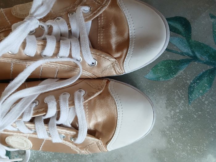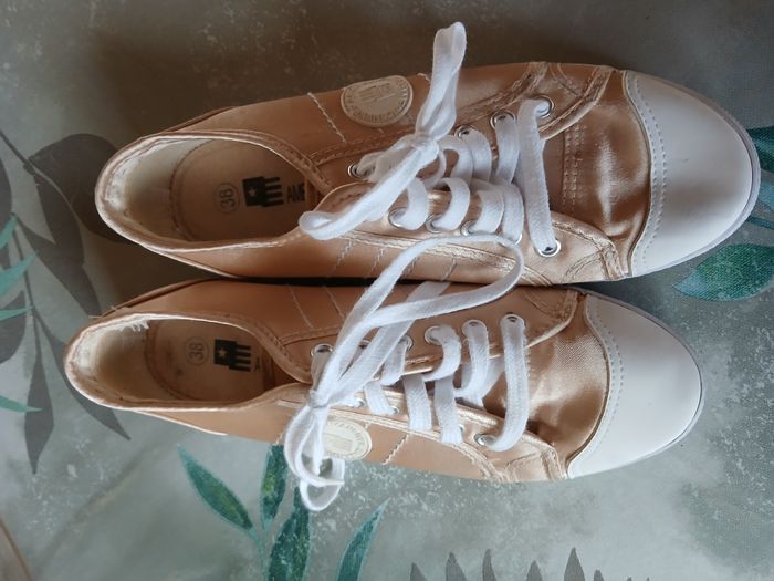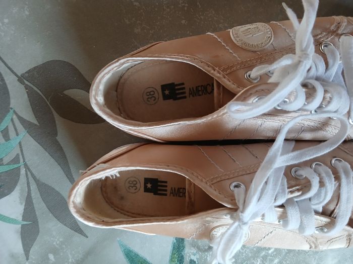 Baskets femme- Taille ; 38 🔹 État : Très bon état, porté quelques fois seulement. 🔹 Couleur : Blanc doré 🔹 Marque : American river 📦 Envoi rapide et soigné