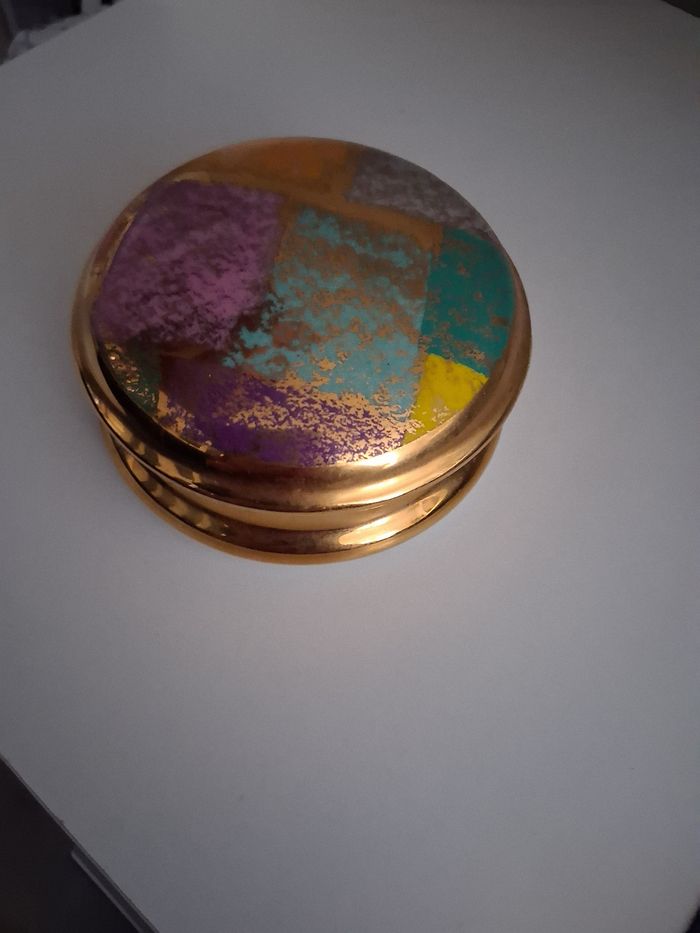 Bonbonnière ronde avec couvercle en porcelaine Doré multicolore Excellent état