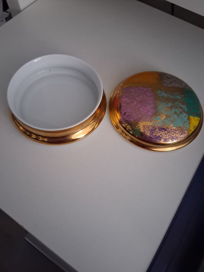 Bonbonnière ronde dorée en porcelaine  - photo numéro 1