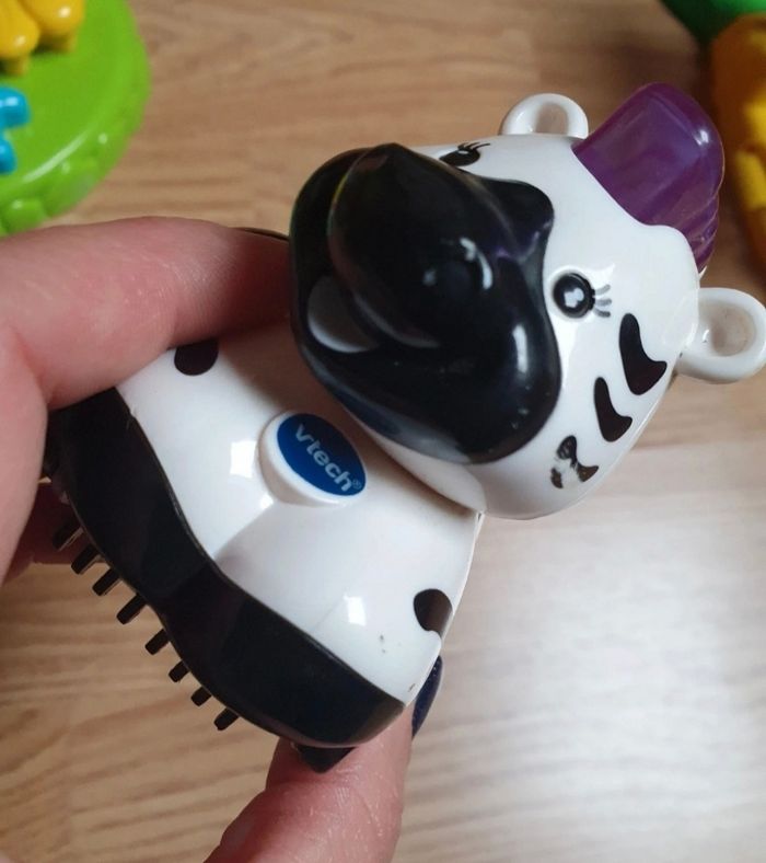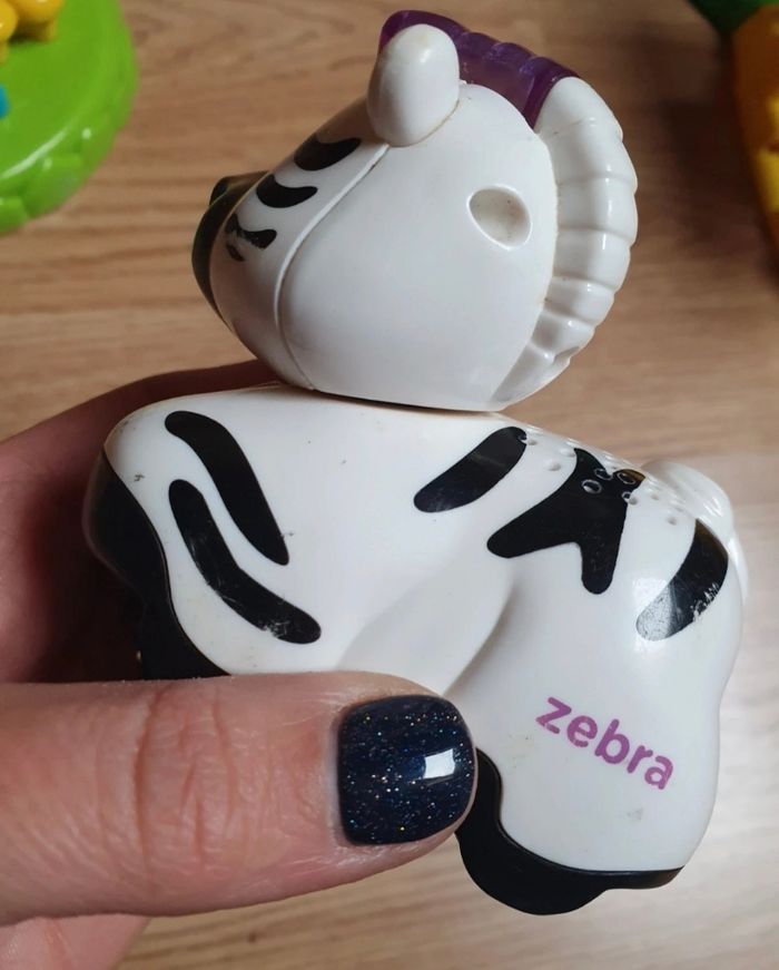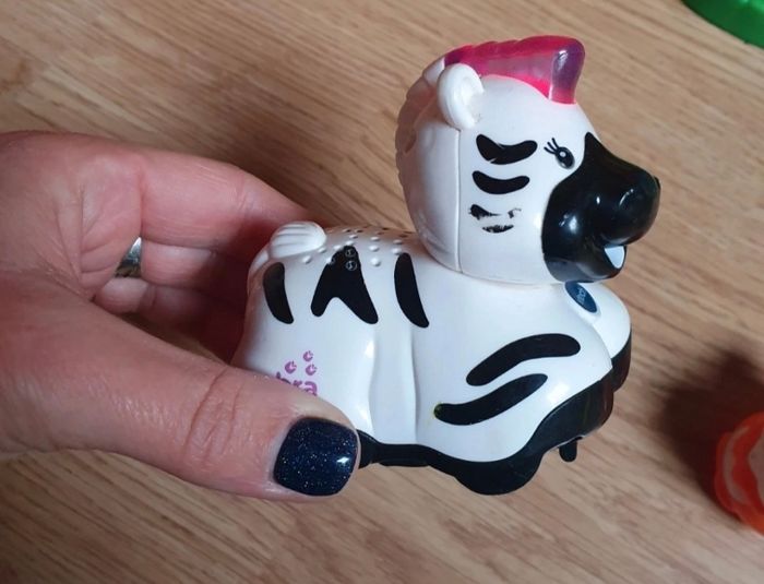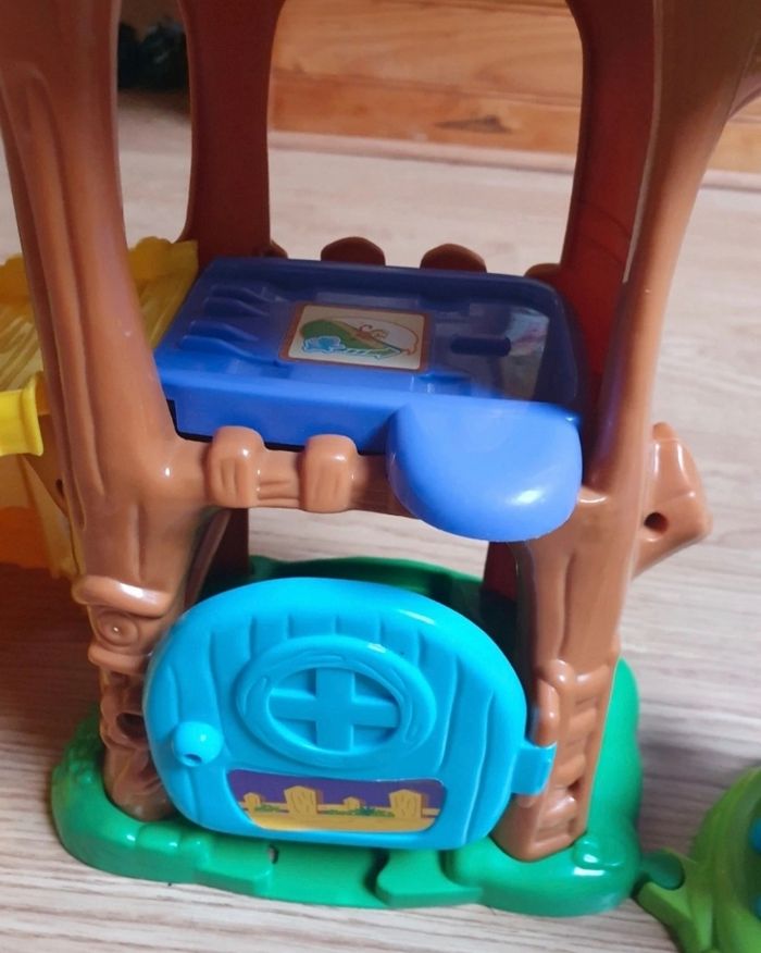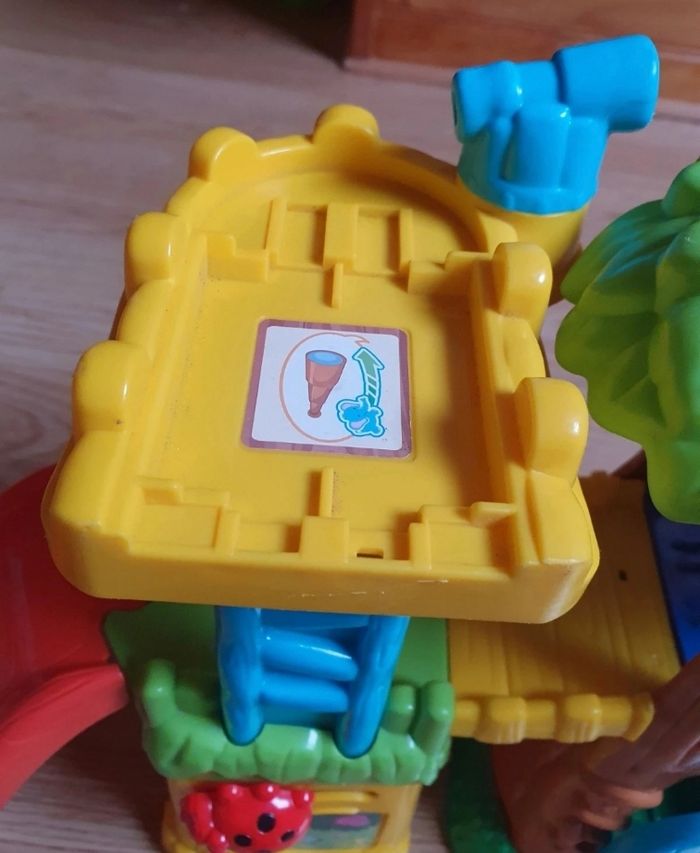 2 personnages fournis dont le zèbre animé (attention langue anglaise) qui s exprime selon les pistes détectées. Personnage écureuil abîmé. Manque drapeau vtech au dessus de l arbre. Vendu sans la boite d'origine. Je vends d'autres jouets mais également des vêtements et livres pour enfant. Réductions activées pour les lots
