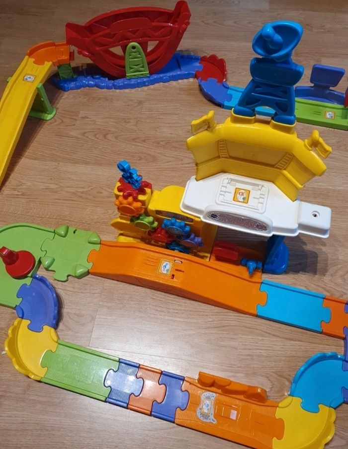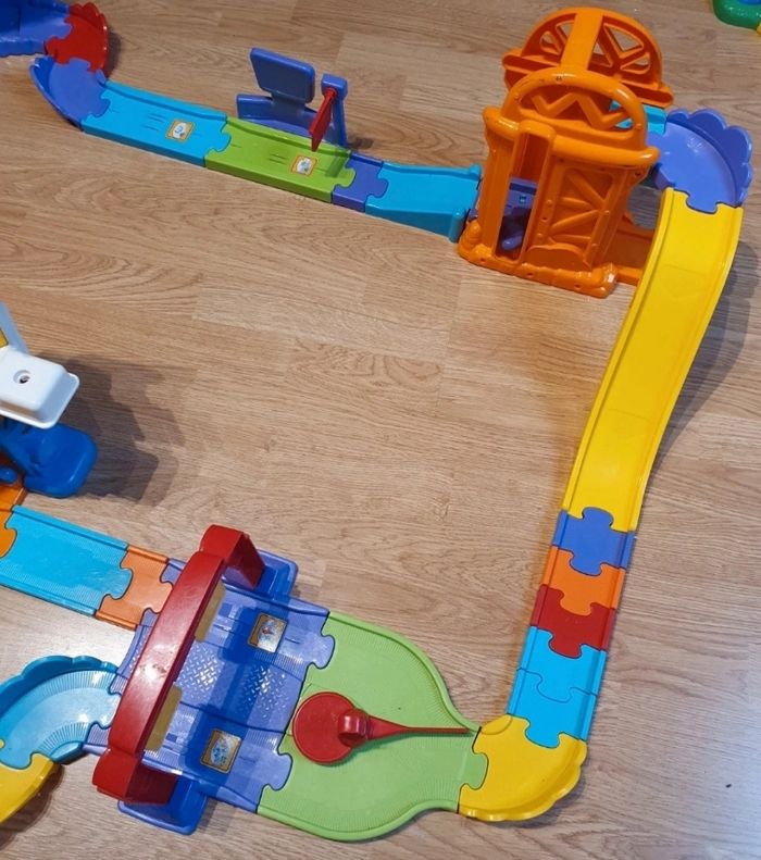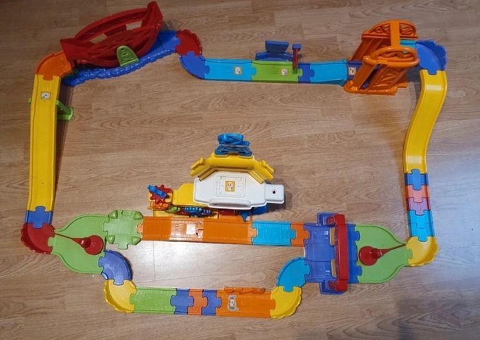 Attention : Vendu sans véhicule L'ascenseur ne fonctionne probablement plus automatiquement et petite partie cassée en dessous (pas visible quand le circuit est monté) Manque décoration coupe Je vends d'autres articles jouets (dont d'autres de la collection tut tut), livres et vêtements enfants. N'hésitez pas à faire un lot -> réductions activées
