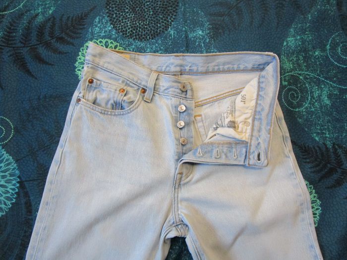 Jean Levi’s 501 Premium Troué coupe droite femme 100% coton Taille 36 W26 L28 Bleu clair (J233) - photo numéro 10