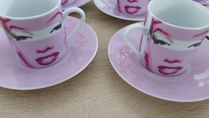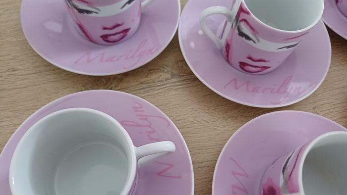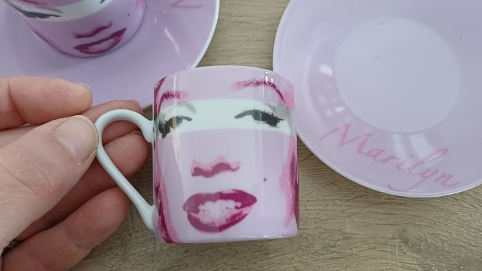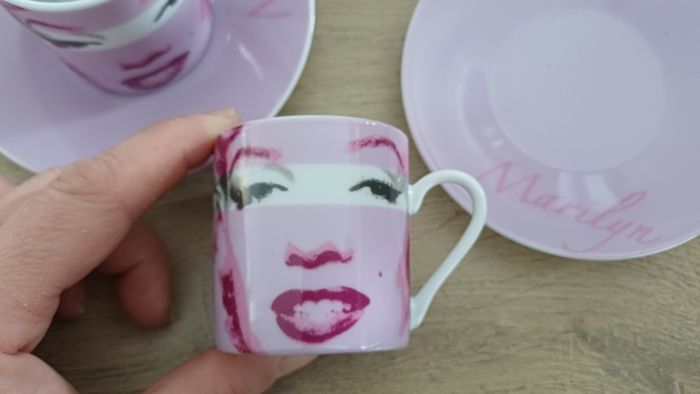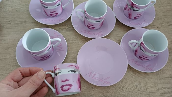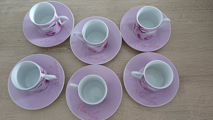 Lot de 6 tasses expresso + 6 soucoupes Marilyn Monroe – Rose ✨ Magnifique service à café expresso au design glamour rose, avec visages stylisés et inscription “Marilyn”. Parfait pour apporter une touche chic et rétro à vos pauses café ☕💗 🔹 Marque : Marilyn Monroe 🔹 Nombre de pièces : 12 (6 tasses + 6 soucoupes) 🔹 Contenance : environ 9 cl / 90 ml par tasse (format expresso) 🔹 Matière : porcelaine / céramique 🔹 Couleur : rose / blanc 🔹 État : Très bon état, peu ou pas utilisées Idéal pour : café, ristretto, décoration, cadeau, collection 💝 #servicecafe #expresso #tasses #marilyn #rose #vaisselle #vintage #deco #coffeelover #ideeCadeau #maison #collection #porcelaine #kitchen