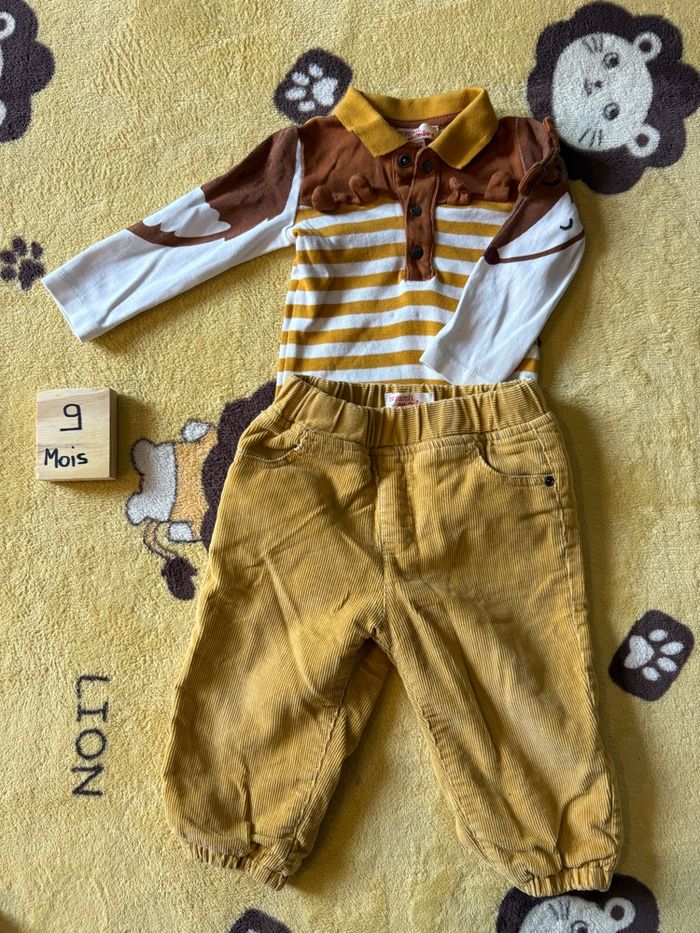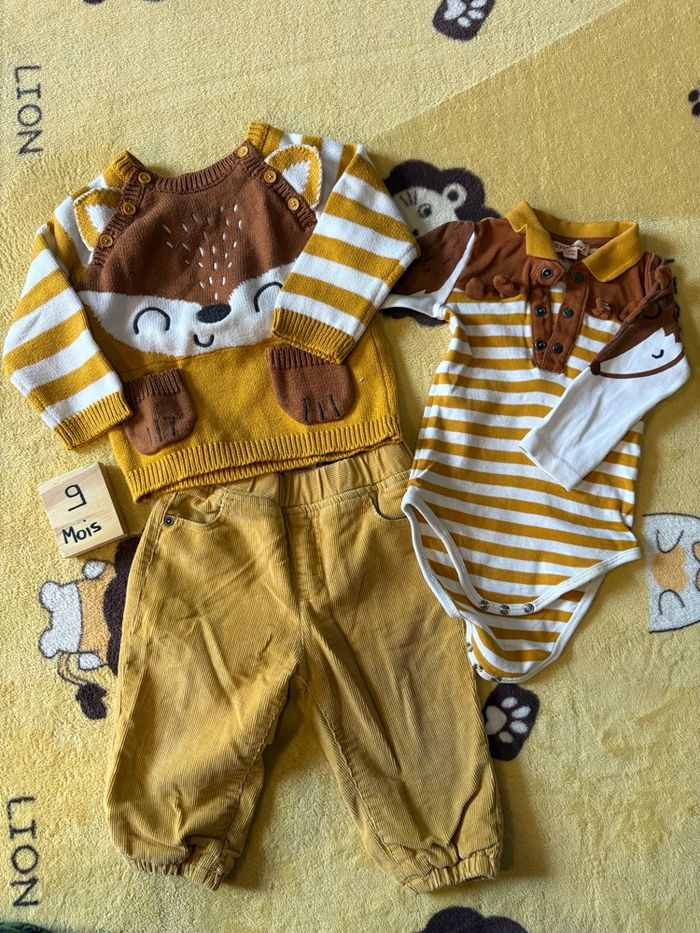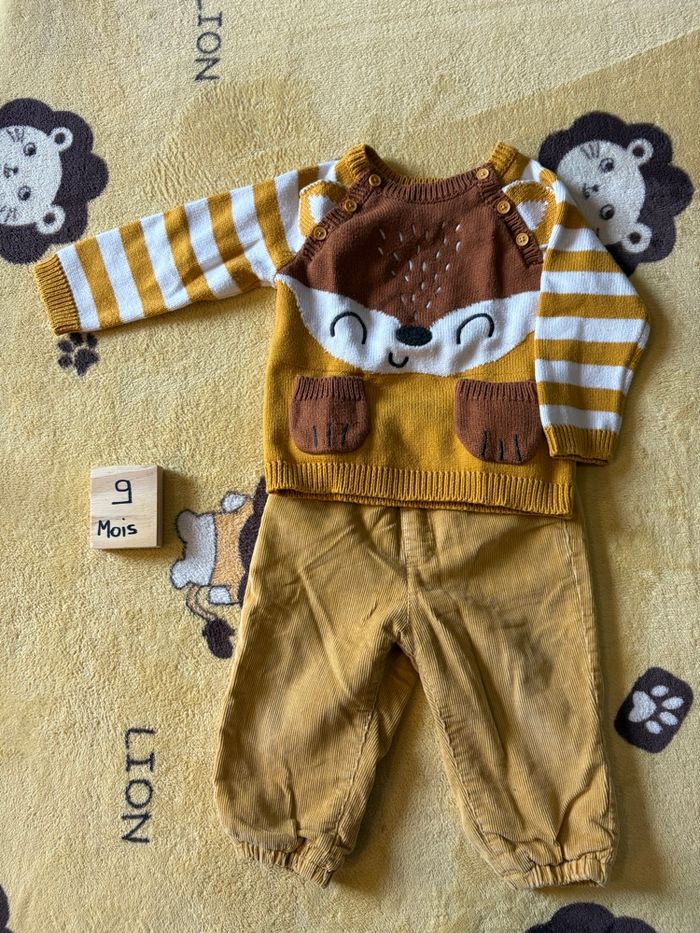 🥳reduc avec les lots activée , seul le prix est ferme 📦 Dépôt de colis presque tous les jours, de préférence mondial relais Du pareil au même DPAM 9 mois Motif renard Pantalon velours côtelé Bodie légèrement taché à l’entrejambe, presque invisible