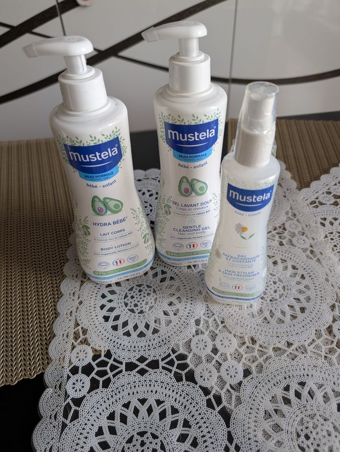 Gamme complète mustela pour bébé les corps plus je lavandou pour les cheveux plus haut, rafraîchissant et coiffant. J'en ai plusieurs si ça intéresse. Les trois a un prix intéressant