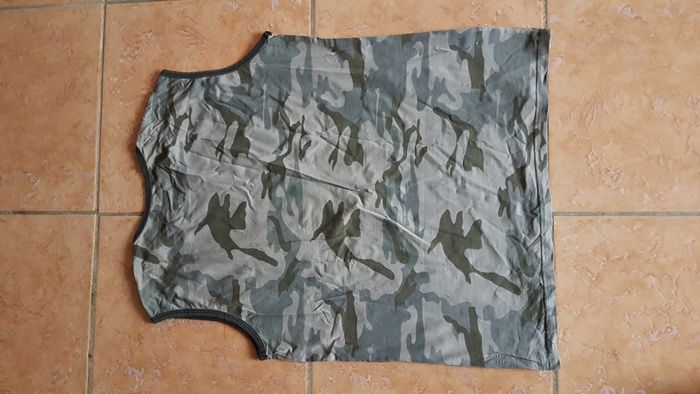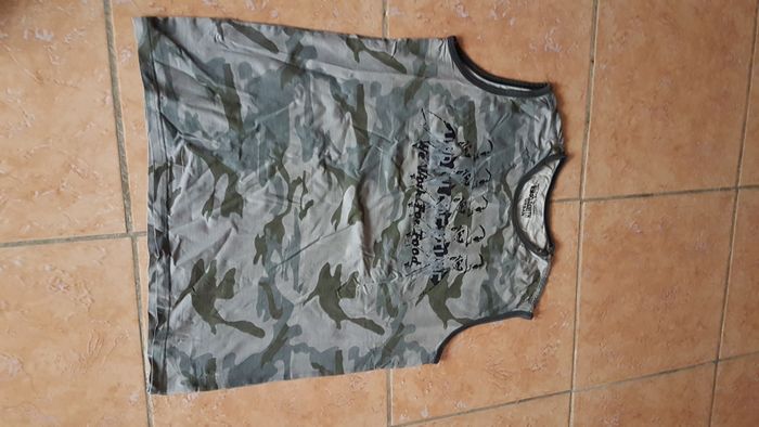 Débardeur homme Taille 40 Couleur armée avec motifs à l'avant et inscriptions Sans manche Col rond Marque Goldmith