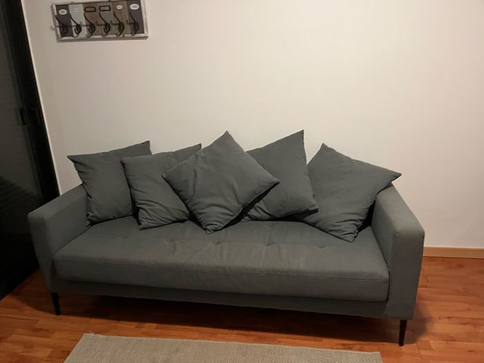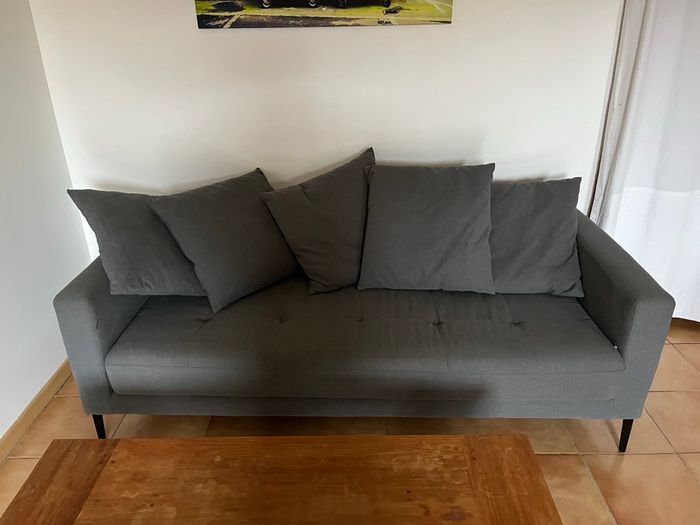 Canapé fixe gris avec ses coussins Bon état