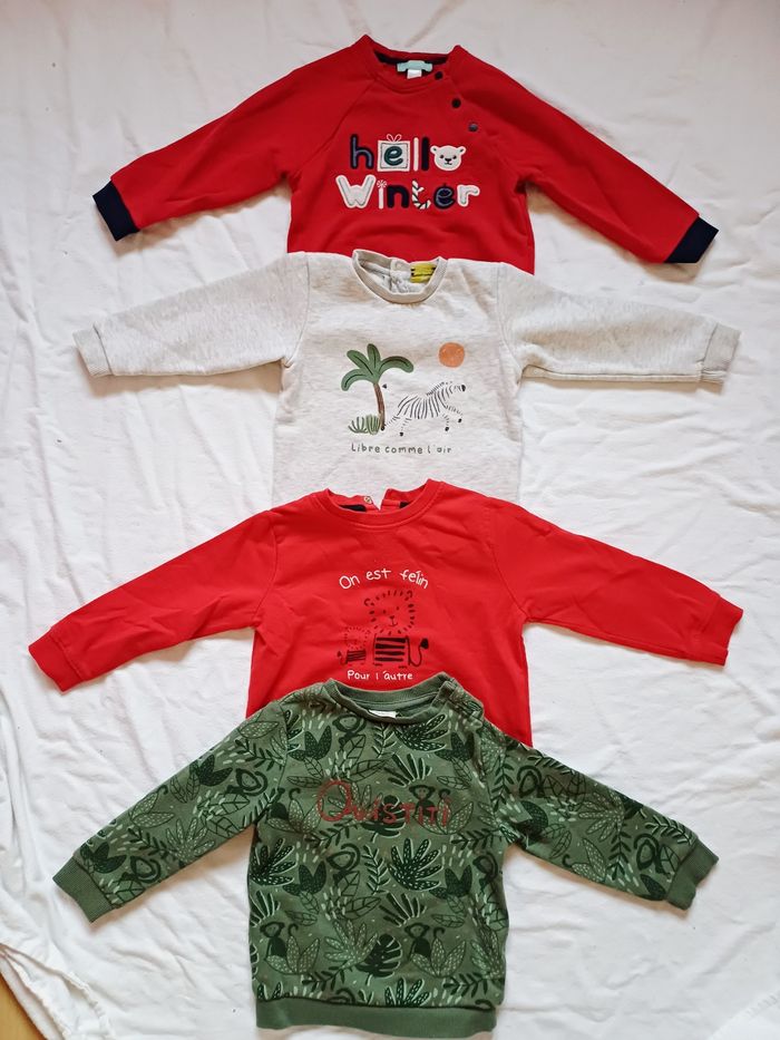 Vends Lot de pulls sweat Molletonné a l'intérieur Pour garcon 24 mois Taille 86 cm 3 pulls Tape a l'oeil 1 pull Obaibi En tres bon etat Prix 15 euros Maison non fumeur et sans animaux