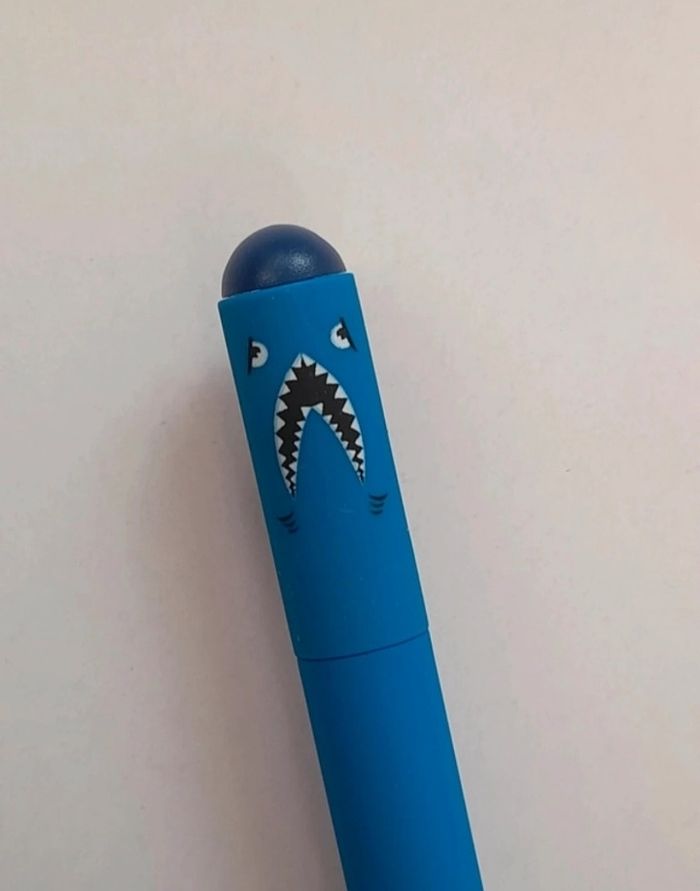 Stylo gel effaçable NEUF et AUTHENTIQUE Legami Milano, modèle Requin triste/fâché, n°EP0006. Hors production. RARE.