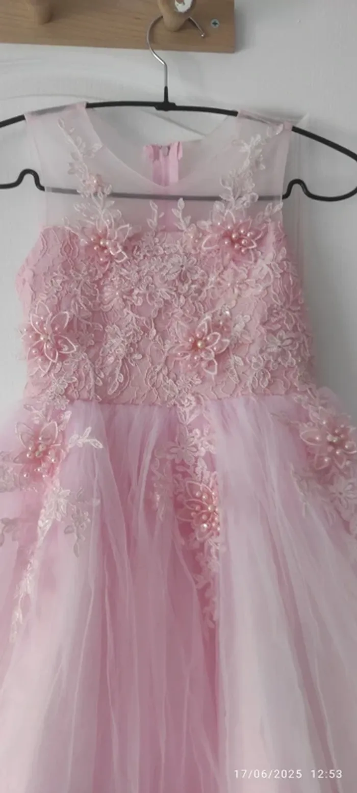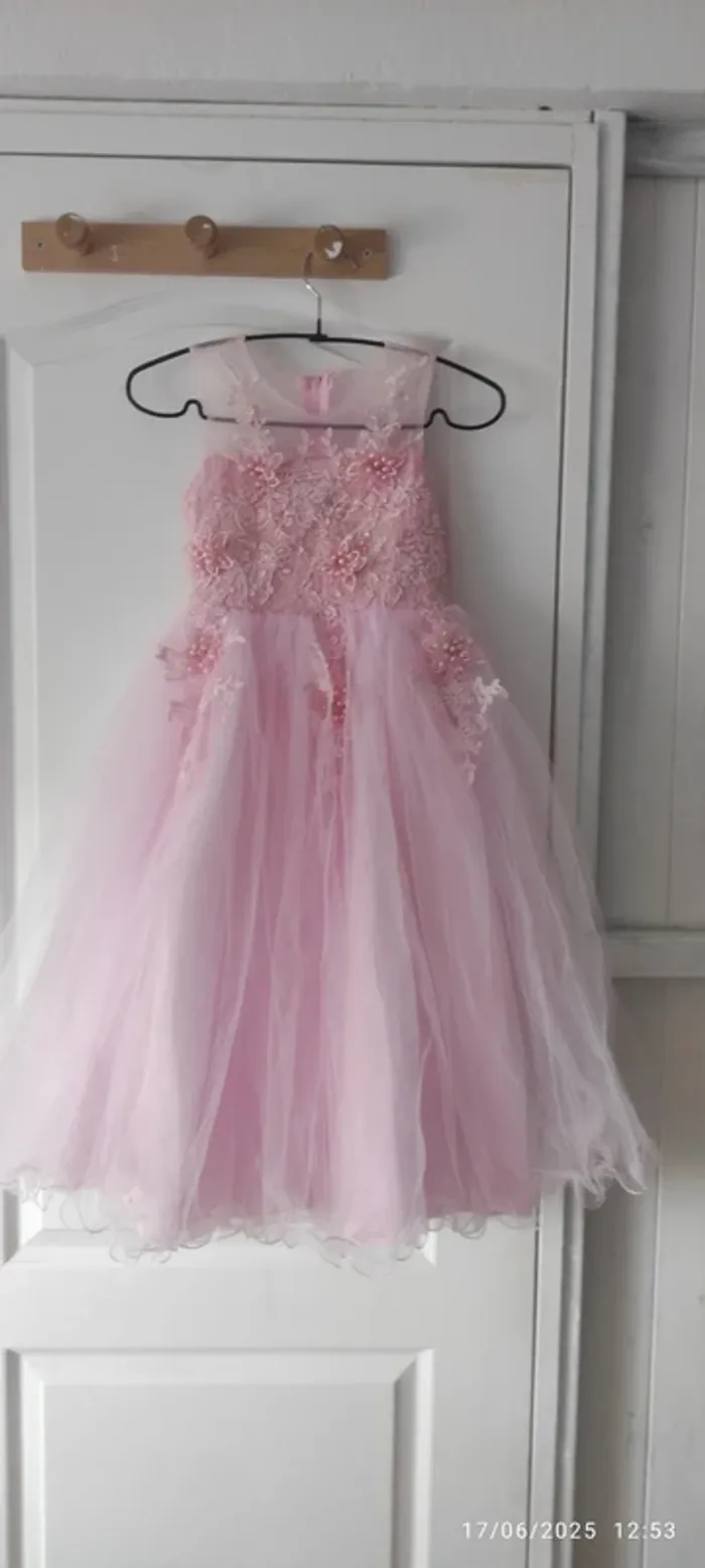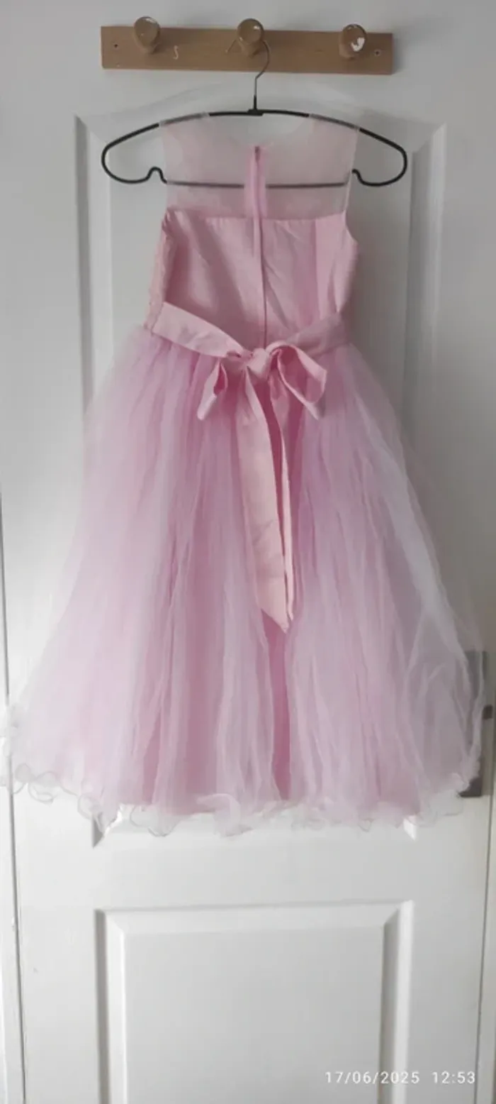 Très belle robe de cérémonie taille 10 ans Belle dentelle sur le devant avec perles rose Tulle pour le bas Porter 1 fois