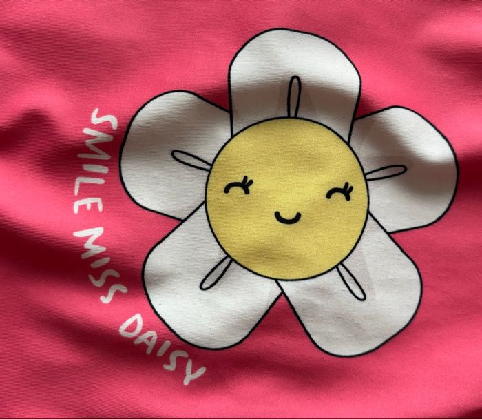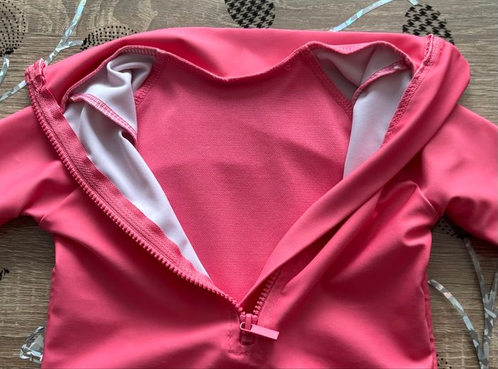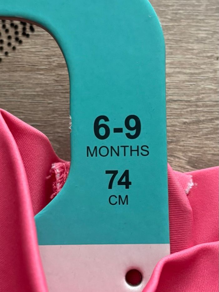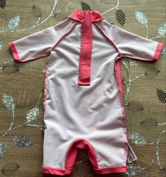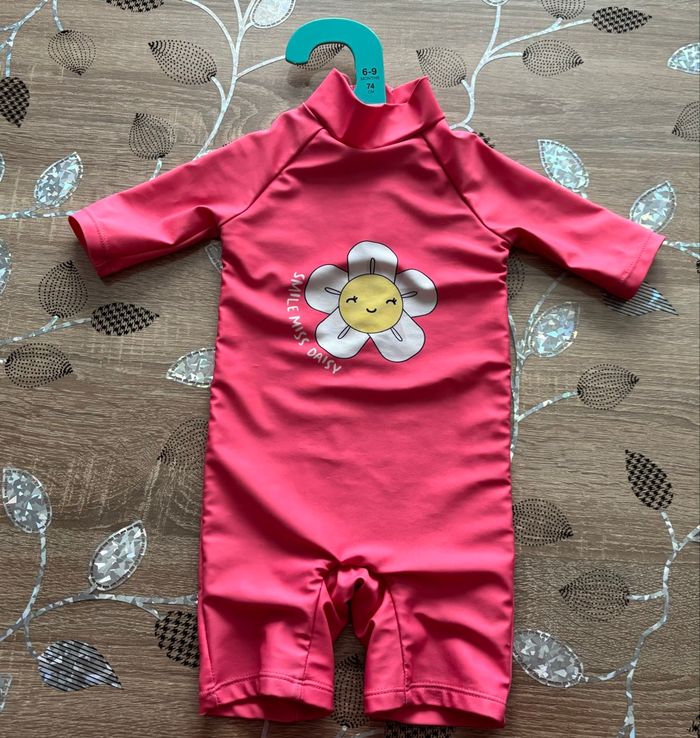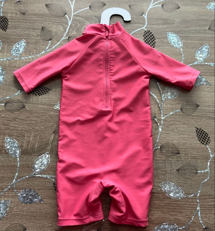 Combinaison de bain anti-UV rose avec motif fleur Très bon état, confortable et idéale pour la plage ou la piscine. Marque : Primark Taille : 6-9 mois 74cm