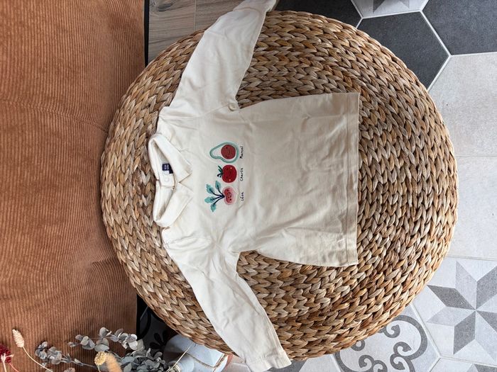 Ensemble sergent major comprenant : - un polo manche longue - une salopette avec ouverture entre jambe fermeture éclair (top tient parfaitement et suit tous les mouvements) Collection thème verger / potager - fruit légume Beige, crème / vert Neuve - juste lavée