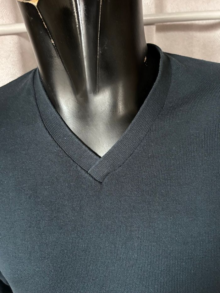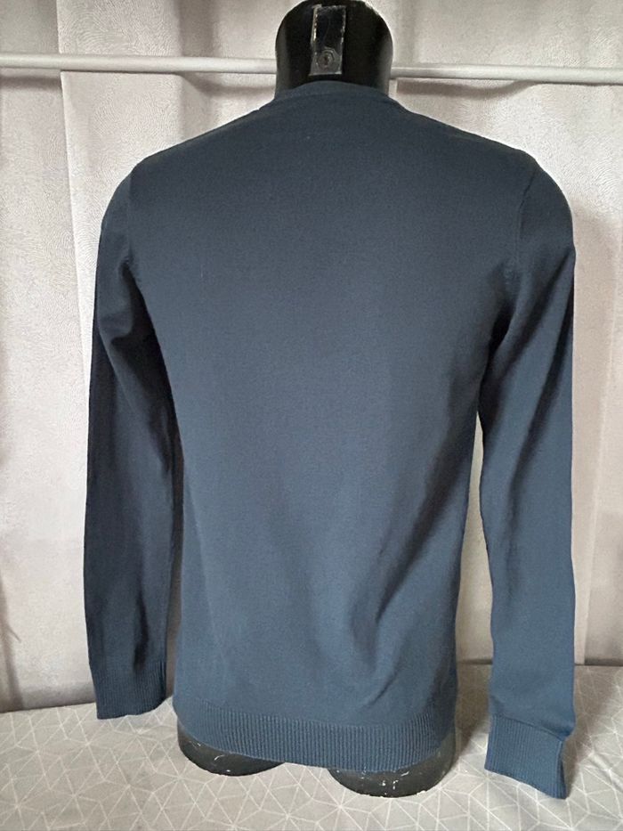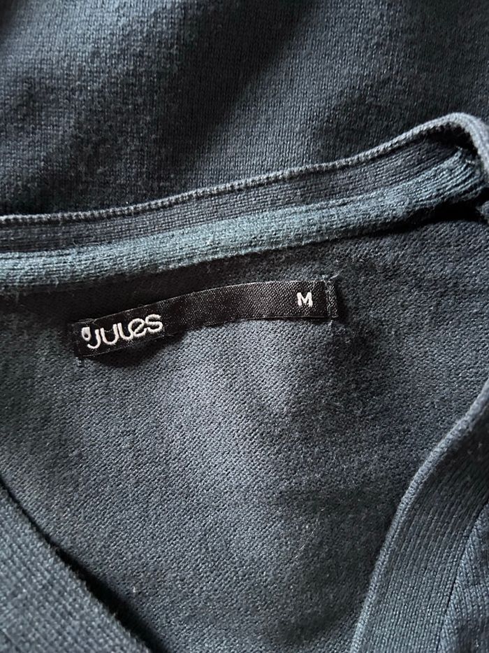 Pull fin vert foncé / eider Encolure V 70% coton 30% nylon Taille M Jules Dimensions sans tirer : Carrure 38 cm Aisselle à aisselle 49 cm Longueur 67,7 cm