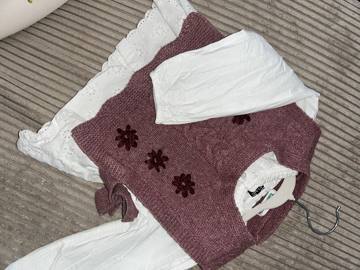 Adorable surchemise brodée de fleurs, taille 12 mois. Couleur claire / neutre (difficile à définir précisément), facile à assortir. 👉 Portée avec la chemise blanche brodée, la combinaison des deux est très belle et harmonieuse. Parfaite pour un look doux et tendance 🌼 Très bon état.