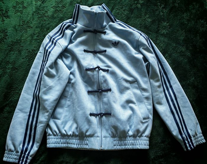 Veste ADIDAS ORIGINALS - New Chinese Style Track au design unique inspiré du style chinois traditionnel, mélange parfait entre streetwear moderne et détails asiatiques. On retrouve: Fermetures type chinoises à l'avant Bandes Adidas noires sur les manches Logo Adidas Originals brodé Coupe confortable et stylée Couleur grise élégante, facile à assortir Veste mi-saison, idéale pour le printemps / automne, très peu vue et recherchée par les amateurs de pièces originales Adidas. État: neuf avec étiquette (voir photos) Preuve d'achat à l'appui