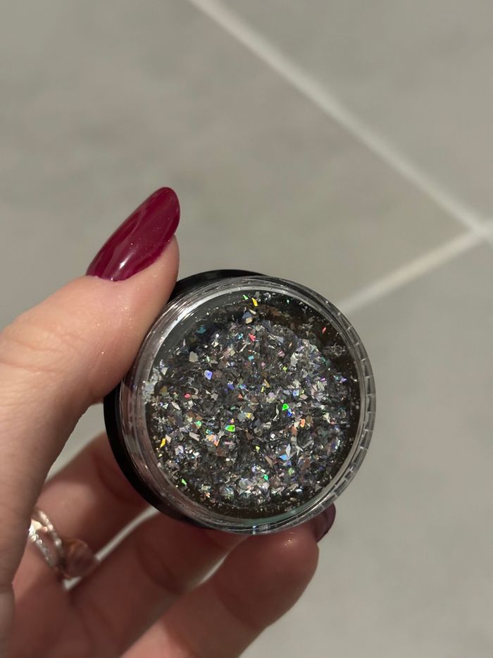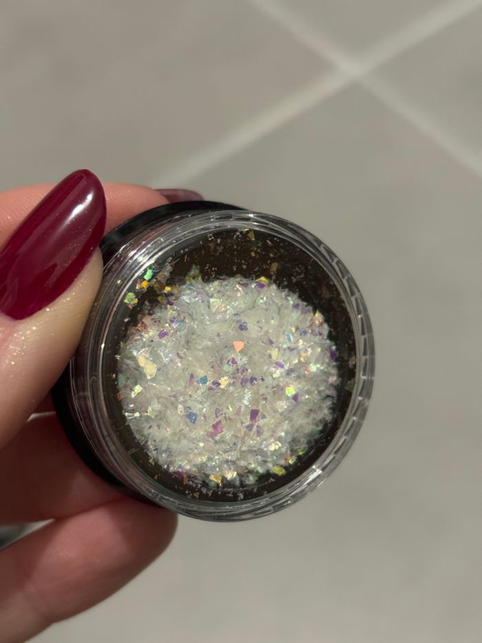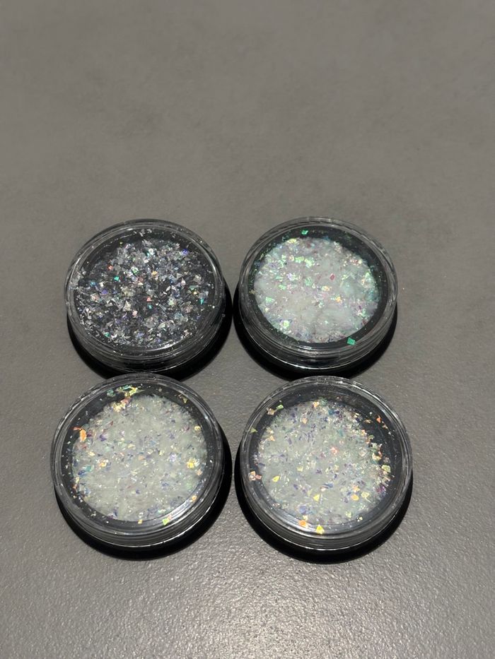 Lot de 4 pots de paillettes 2 magic effet blanc holographique 1 blanc effet vert 1 argent effet silver holographique Paillette pour ongles, nail art