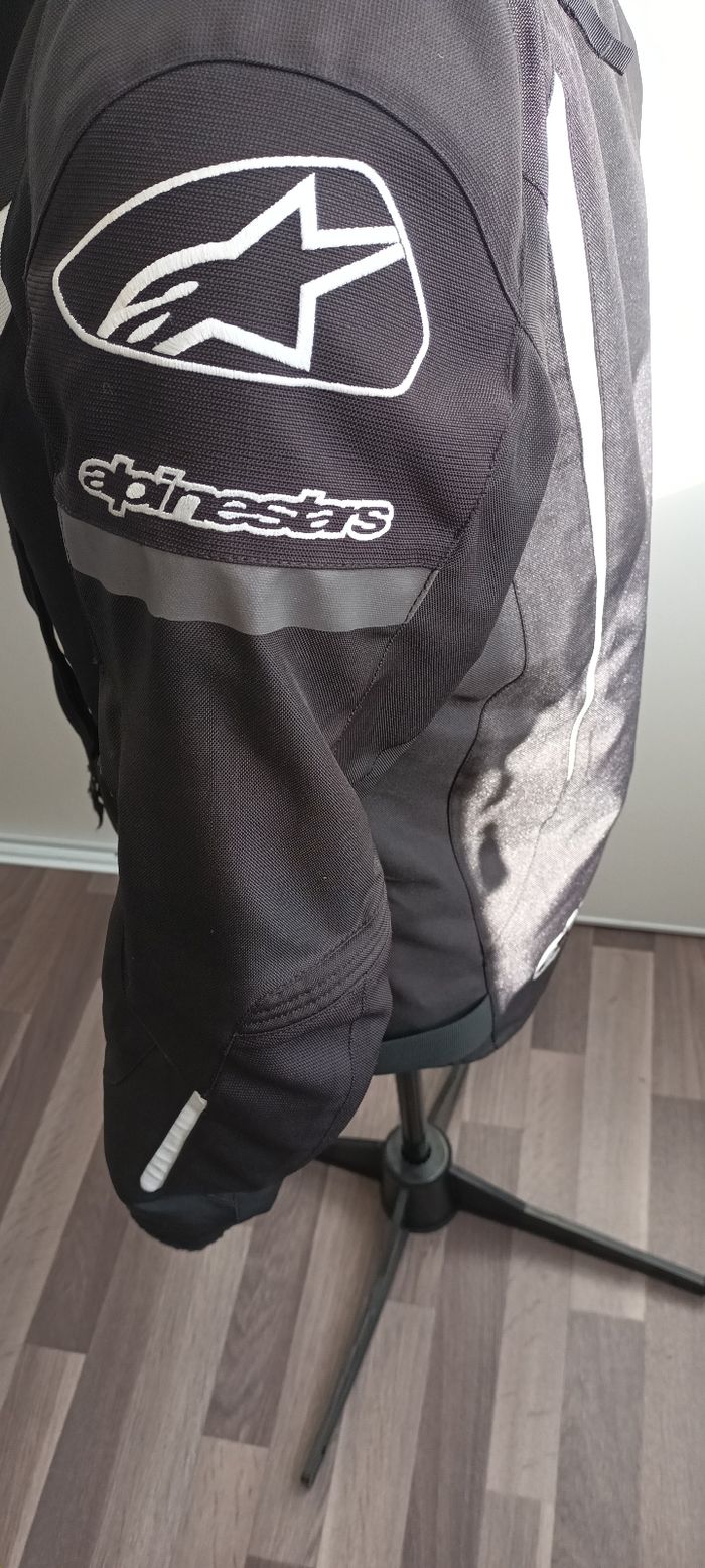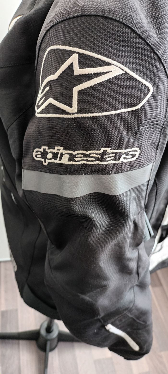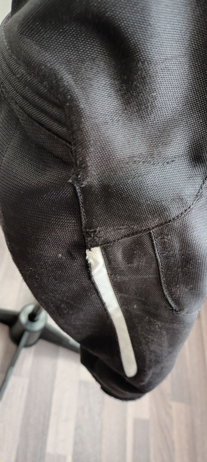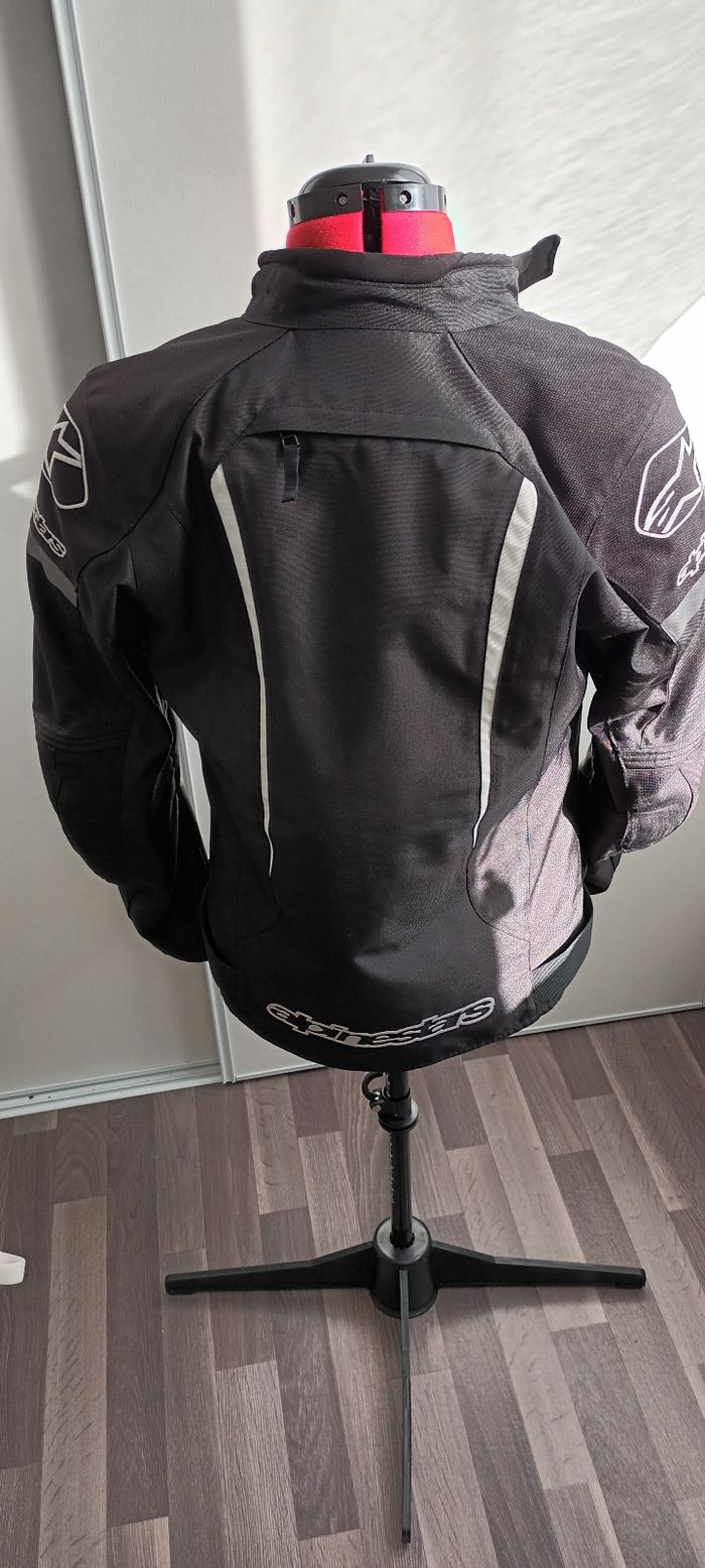 Un blouson moto doublé noir t l.poche intérieur et extérieur abîmé au coude