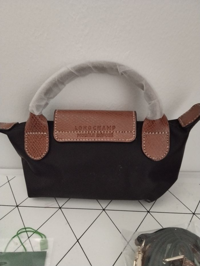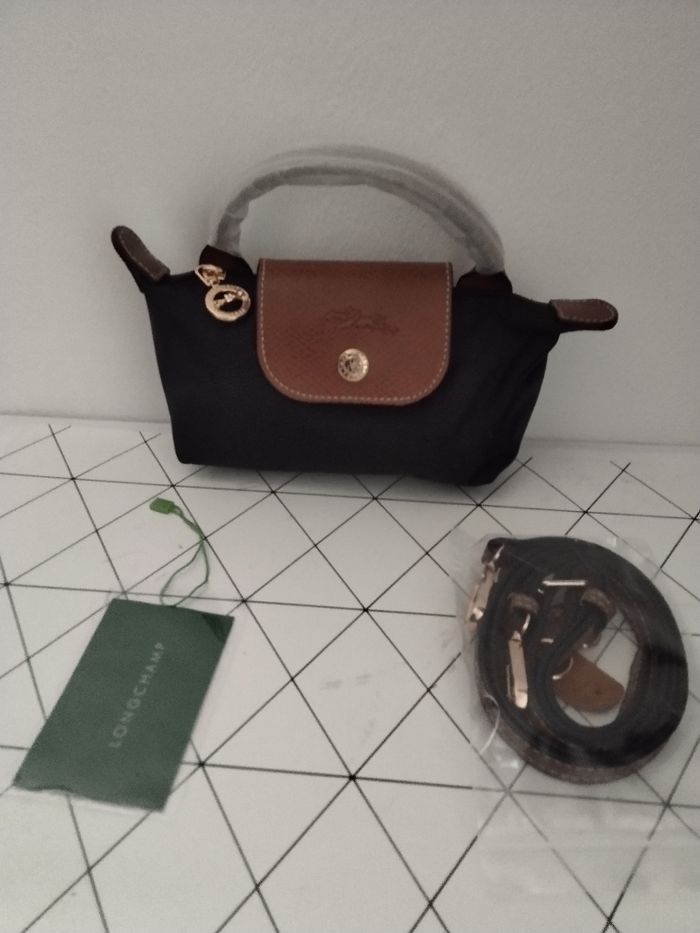 Mini sac Longchamp noir et marron, vendu avec bandoulière, neuf jamais utilisé, envoie rapide et soigné, copie d'excellentes qualités