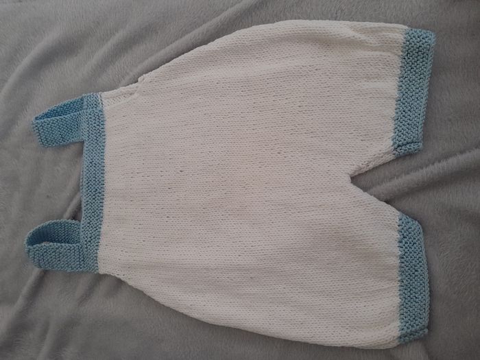 Combi-short, attache bouton, pour l'âge se référer au mesure Longueur : 43cm Matière : 100 % Coton Marque : Fait main au tricot