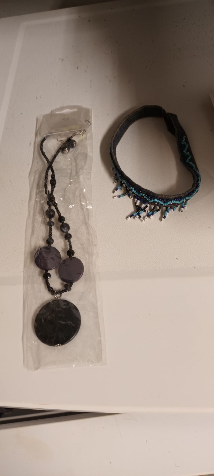 Un collier et boucles d'oreilles neuf noir et un ra du cou jeans perles.