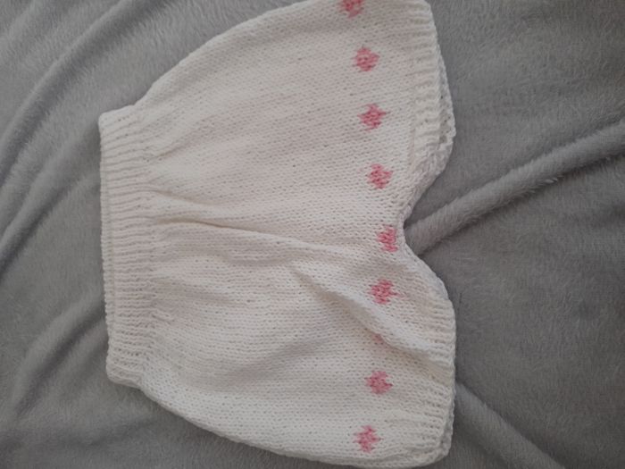 Short, avec petite déco sur le bas, élastique à la taille, pour l'âge se référer au mesure Longueur : 23cm Matière : 100 % Coton Marque : Fait main au tricot
