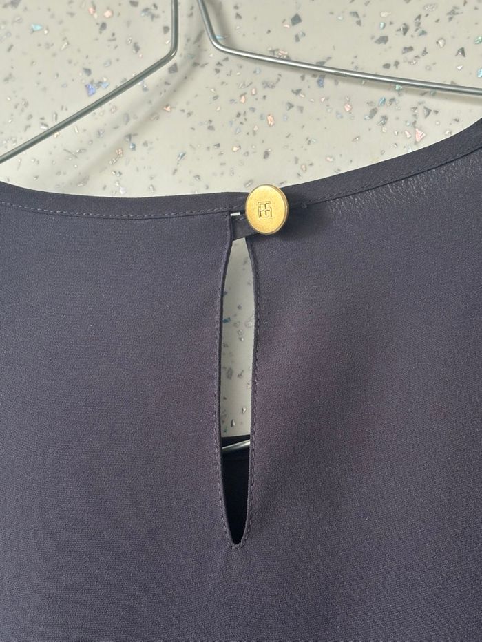Haut noir/légèrement bleu marine avec détail à l’avant, petites ouvertures en bas de chaque côté et à l’arrière avec bouton de fermeture doré Taille S/36 Excellent état #chemise #blouse