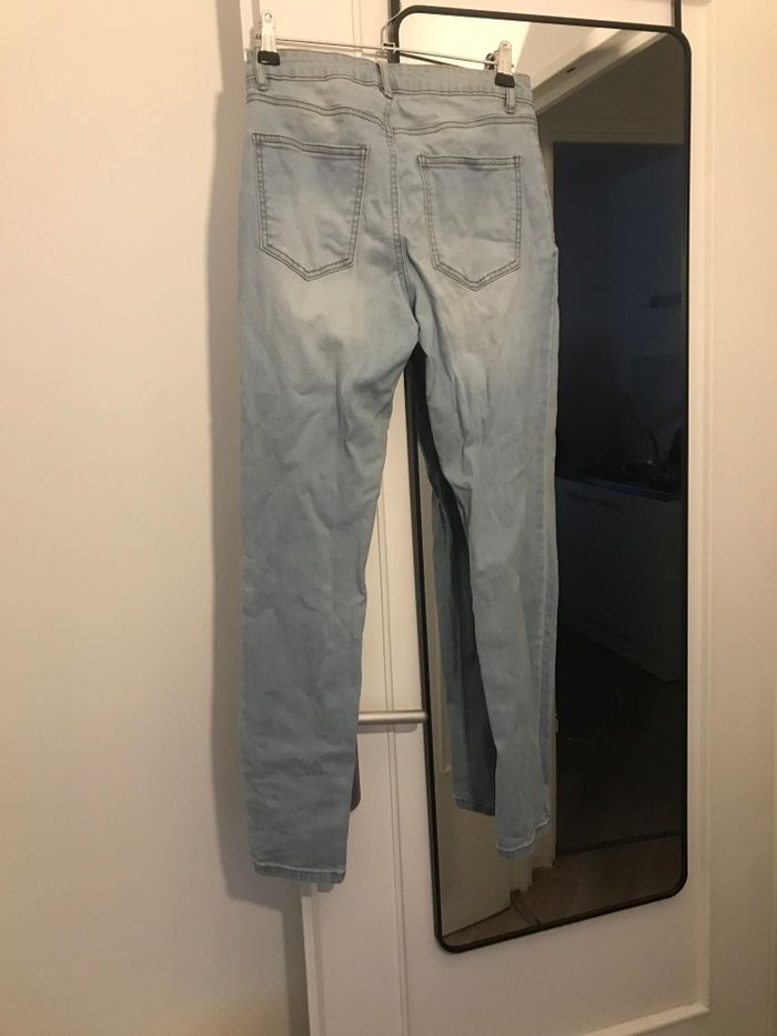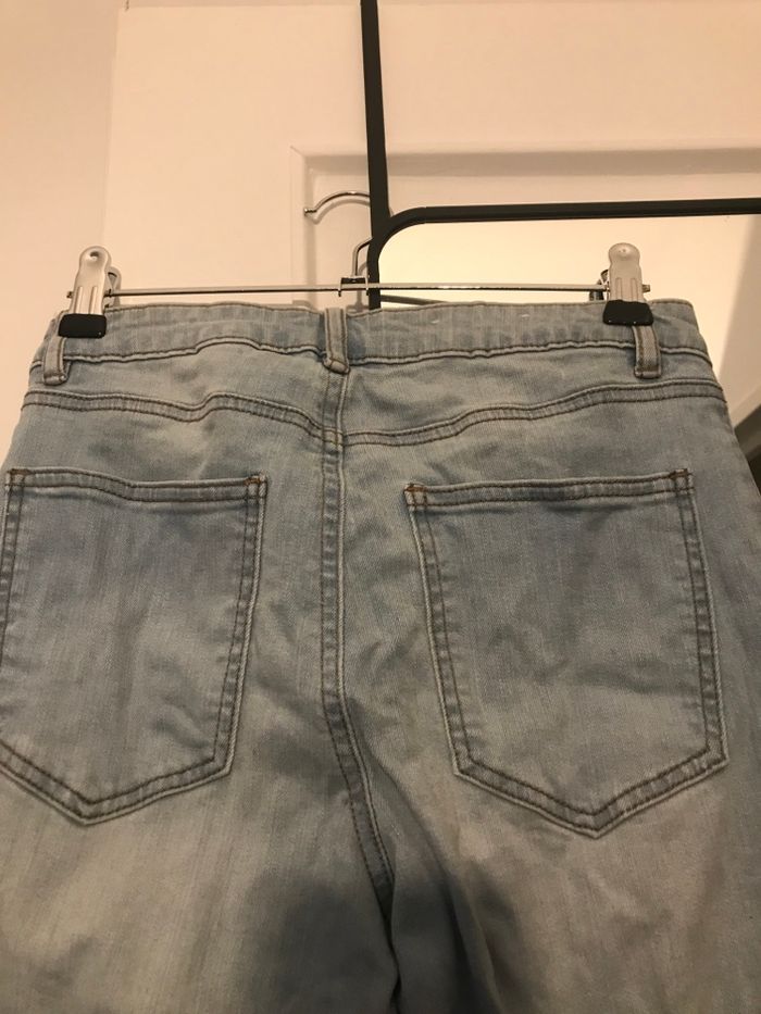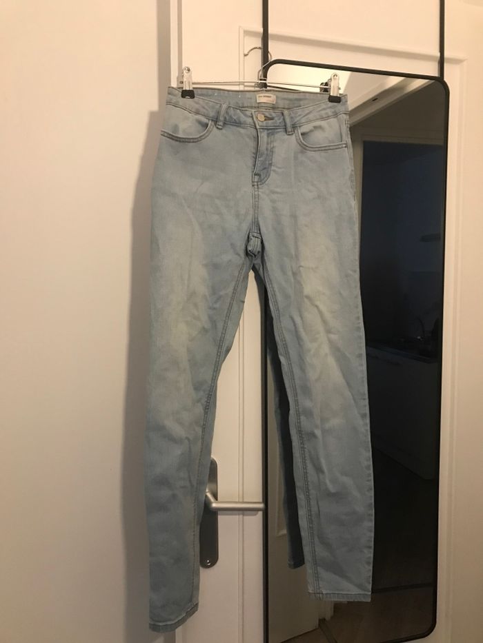 Jean pour femme taille 38 couleur bleu ciel matière en coton tee-shirts veste gilet chaussure