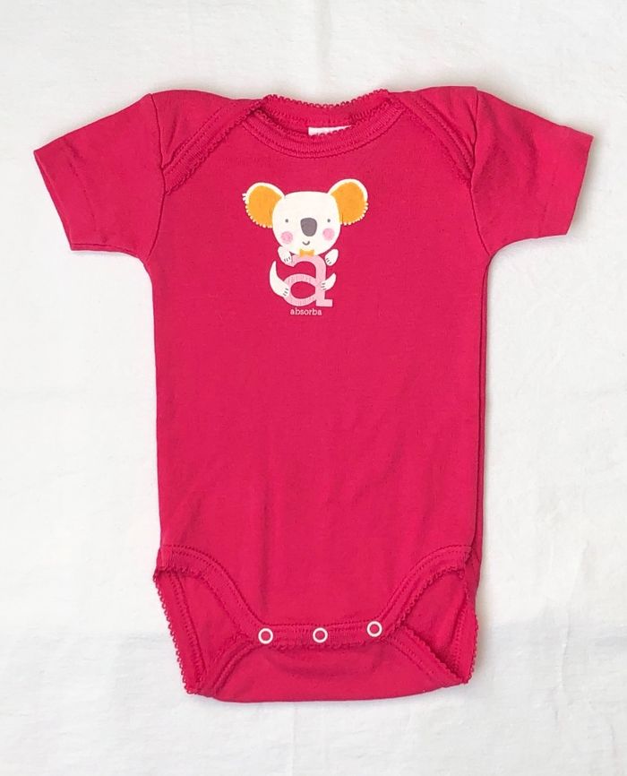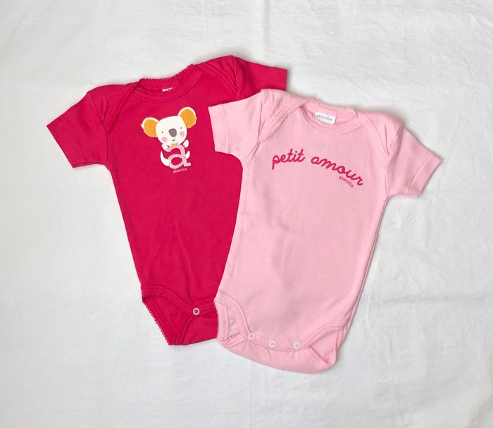 Lot de deux bodies Absorba, Taille 3 mois / 59 cm, Manches courtes, En coton. Thème « jolie coquette » : -un body rose framboise, motif koala, -un body rose clair « petit amour ». Quasiment pas portés, le tissu est en excellent état, sans trou, ni bouloche. A noter, 2 petites taches noires au niveau du col du body framboise. C’est très discret, ça se confond avec la couleur. Cf photo. 🌸 Vous aimez cet article ? N’oubliez pas de visiter le reste de mon dressing en filtrant les tailles.